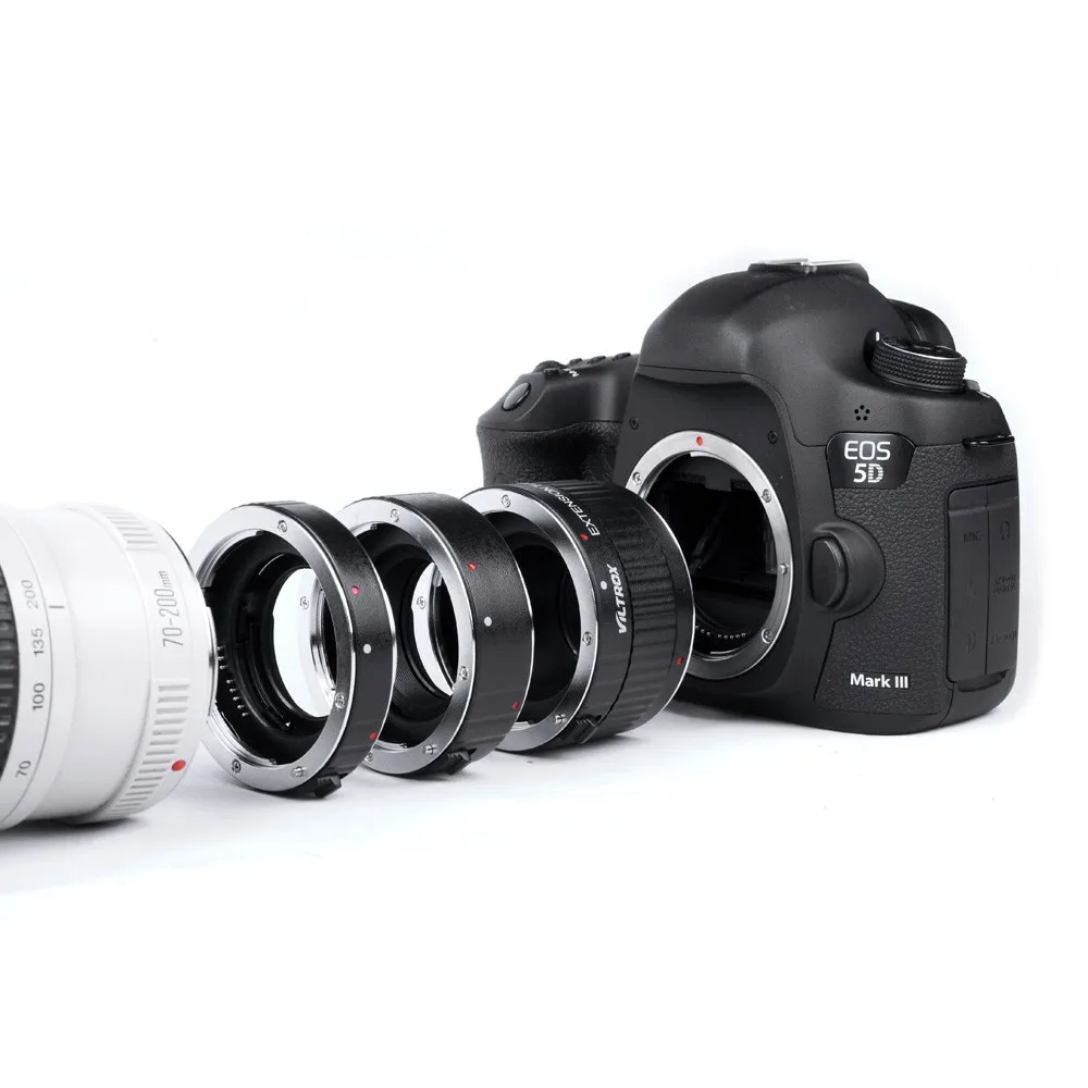 Набор удлинительных трубок AF может превратить ваш объектив в макрообъектив. Он перемещает объектив от пленки или цифрового датчика. Чем ближе фокус, тем больше увеличение. Удлинительная трубка не влияет на качество изображения, так как внутри нет оптики. Для сравнения, фильтр крупным планом часто осуждается за ухудшение качества изображения. Функция автофокуса может работать. Это используется путем крепления между корпусом камеры и объективом 35 мм однообъективной рефлекторной камеры. Он поставляется как набор трубок различной длины, которые по отдельности или в комбинации делают его пригодным для использования в 7 различных длинах. Идеально сочетается с автоматической диафрагмой камеры. С камерами TTL, AE (через объектив, атутоматическая экспозиция) Тип обеспечивает идеальное соединение, за исключением тех случаев, когда в сочетании с электронным блоком вспышки AE. Параметры: Цвет: черный Материал: металл и пластик Диаметр трубки: около 62 мм Длина трубки: (1)12 мм (2)20 мм (3)36 мм Материал: металл (крепление)/ABS (корпус) Цвет: черный Эта удлинительная трубка состоит из 5 частей: 1,12 мм трубки 2,20 мм трубки 3,36 мм трубки 4. Спереди Кепки 5, которые подходят под все модели. Кепки Посылка включает в себя: Набор макроудлинителей с автофокусом x 1 Руководство пользователя на английском языке x 1 Подходит для: Canon EOS EF EF-S SLR и объектив