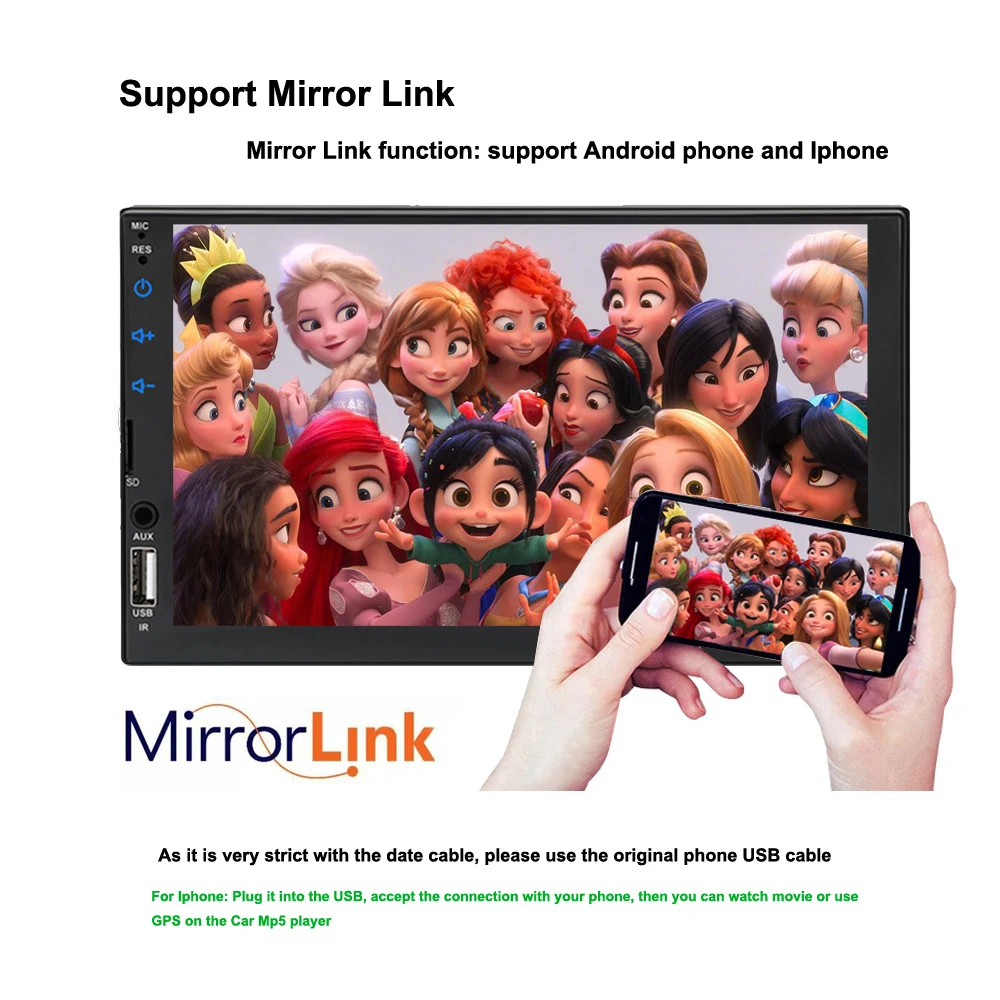 Автомобильный плеер MP5 с 7-дюймовым TFT емкостным сенсорным экраном, Bluetooth, FM радио приемник, поддержка задней камеры, 2 din, Авторадио с зеркальной связью