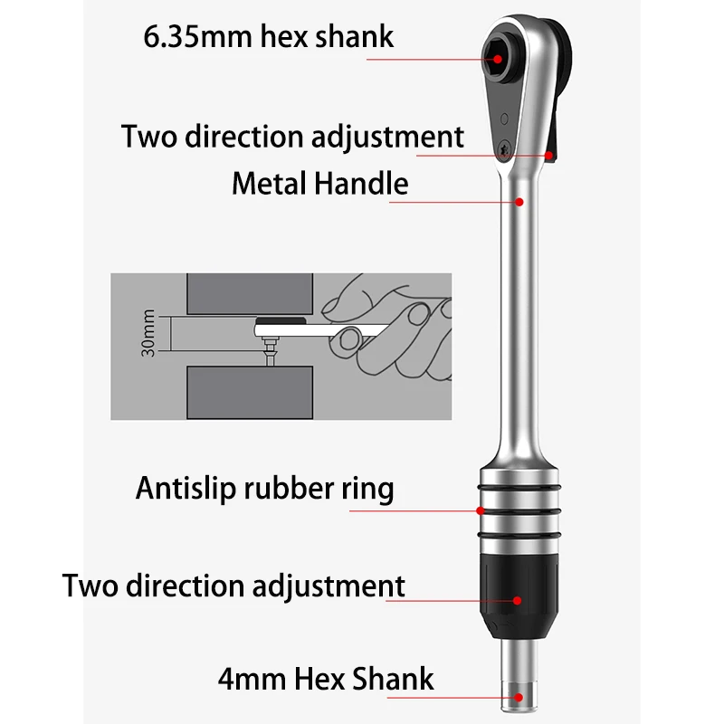 Два направления регулировки храповика scrwedriver, который подходит для узкого пространства.