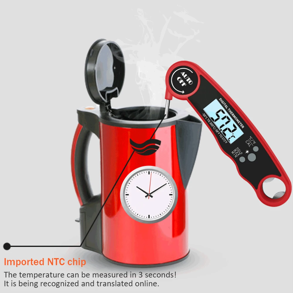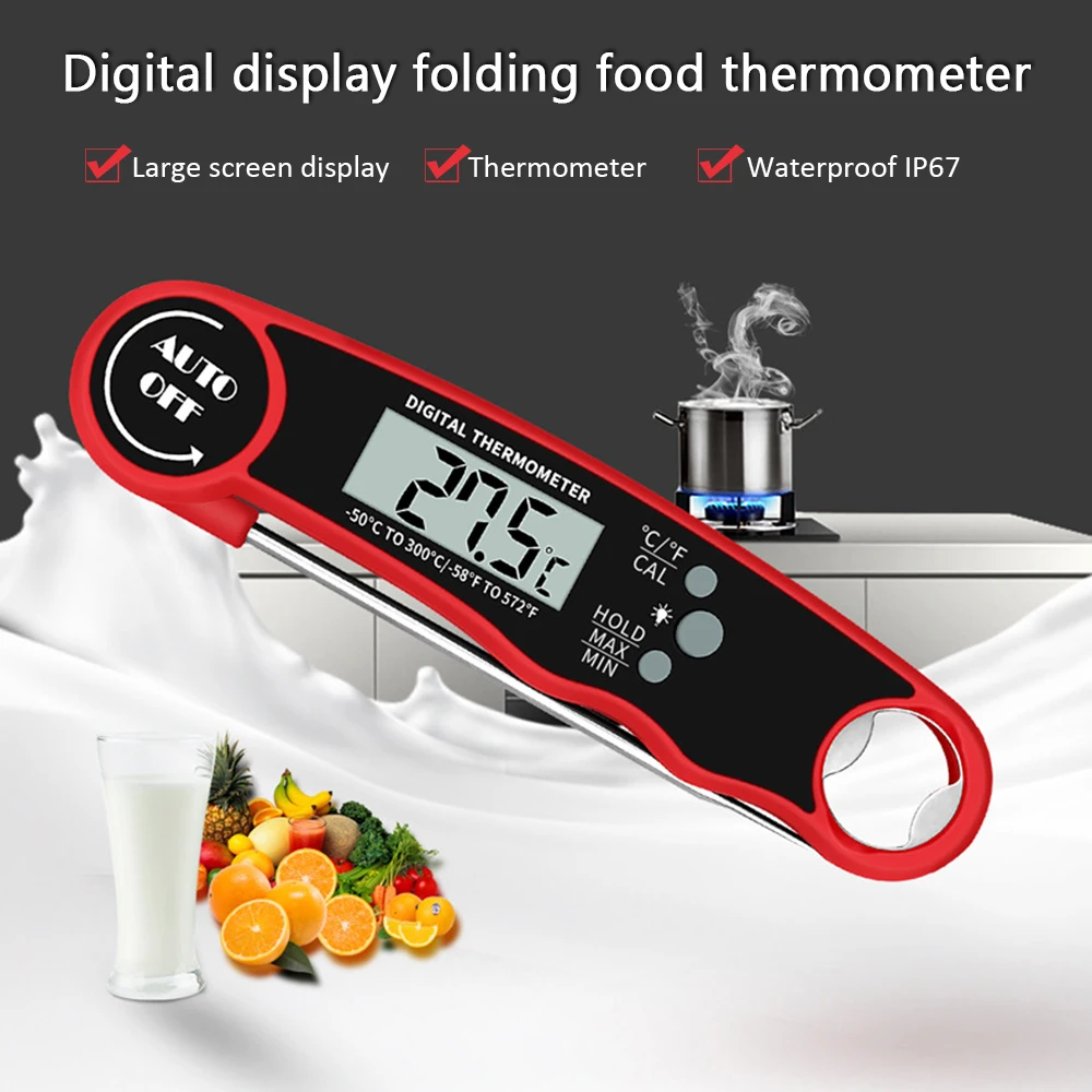 2. Пищевой 304 термометр из нержавеющей стали, складной зонд для хранения
