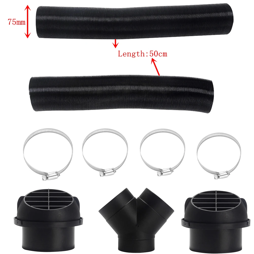 Черный 75 мм автомобильный обогреватель трубопровод + автомобильный обогреватель воздуховод + воздуховод Y филиал + зажим для шланга для парковки Замена Дизельного нагревателя