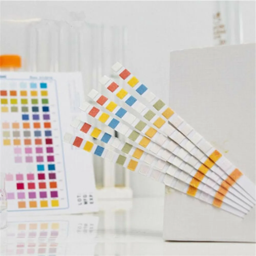 * Просто окуните тест-полосу в аквариум или пруд и сравните цвета на полосе с цветовой таблицей на контейнере.