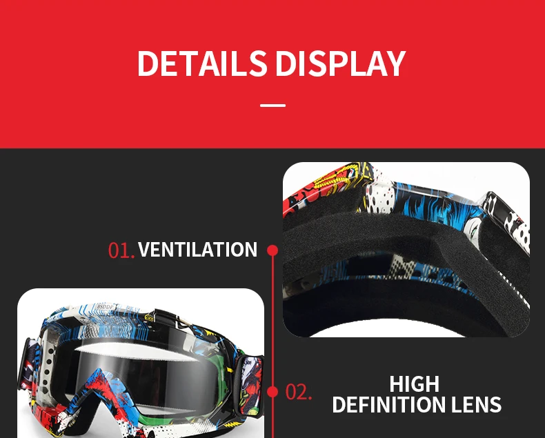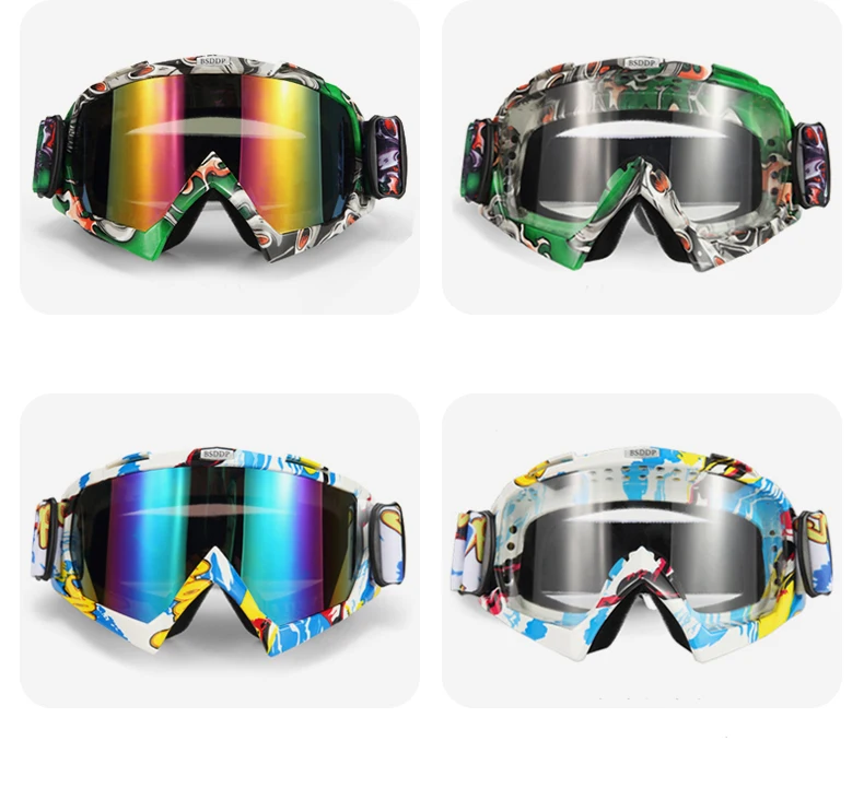 Универсальные мотоциклетные очки Совершенно новое высокое качество. Материал оправы легкий и прочный и складной. Большая Нескользящая эластичная лента предотвращает скольжение очков от шлема. Вы можете отрегулировать длину зеркала, чтобы соответствовать всем типам лица, чтобы обеспечить удобную посадку. Высококачественный поликарбонатный Материал линз для закалки и защиты от трения. Рамка изготовлена из гибкого пластика и не легко повреждена. Регулируемый эластичный шнур, подходит для всех типов лица, чтобы предотвратить падение шлема; Контактная часть лица сделана из губчатого материала, который удобен и безопасен. Материал: ПК + губка + пластик.