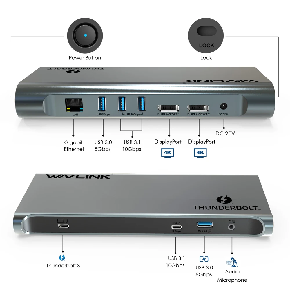 Док-станция Thunderbolt 3 dual 4K обеспечивает максимальную зарядку 60 Вт PD на ваш главный ноутбук/ПК во время подключения периферийных устройств USB-C/A к usb-портам. Два видеовыхода DisplayPort обеспечивают HD разрешение для потоковой передачи видео или других задач.
