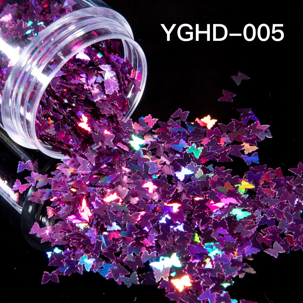 100% новый и высокое качество Для художественного оформления ногтей Легко наносится на натуральные или искусственные ногти. Блестящие конфетти в форме бабочки, голографические блестки, обладают высоким блеском и сохранением цвета, их поверхность гладкая, отражающая множество цветов.