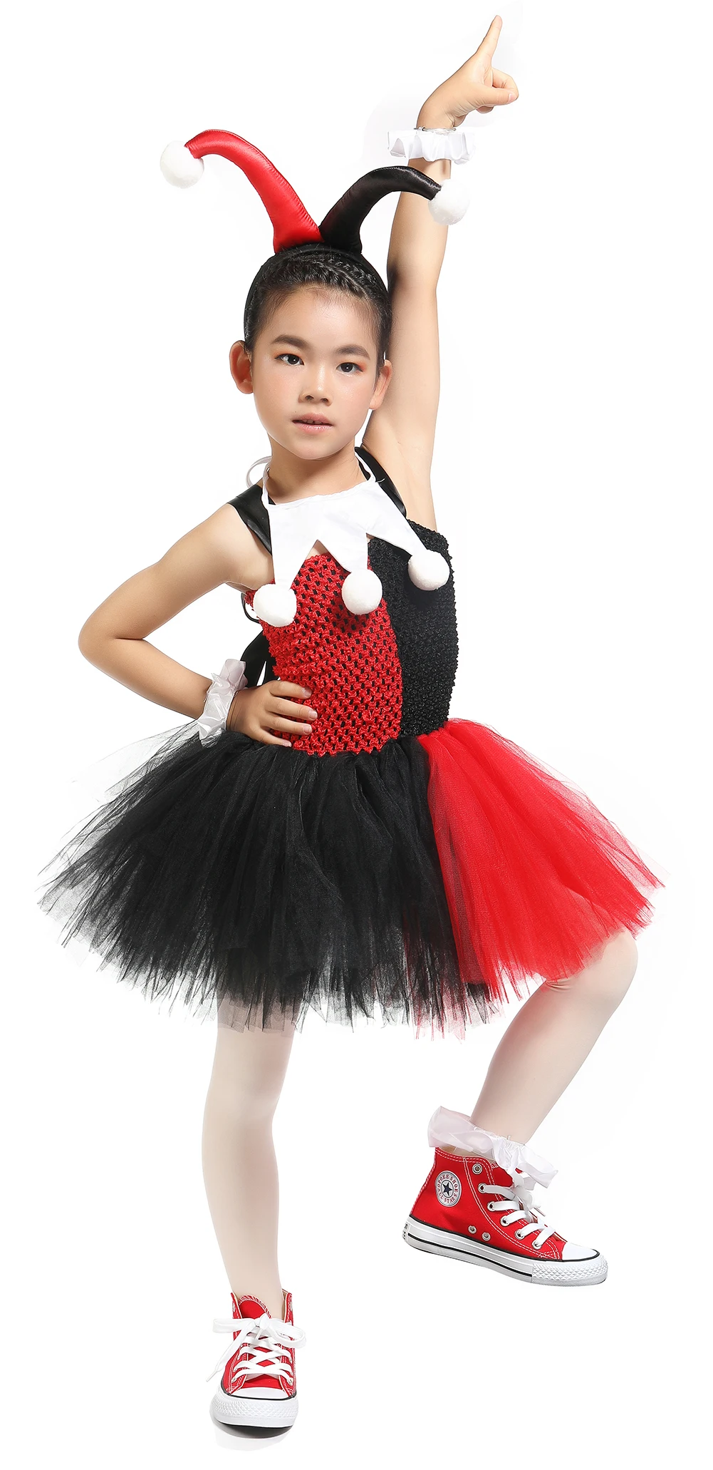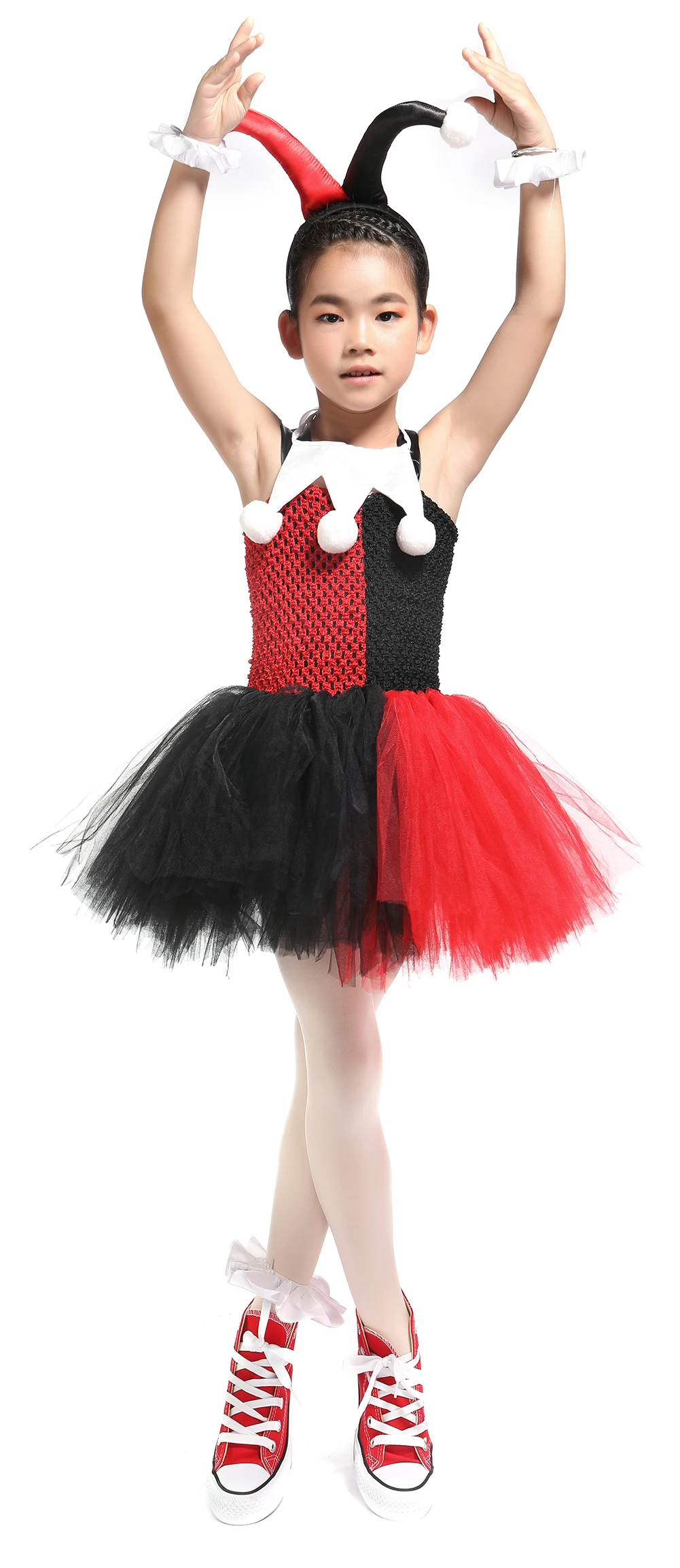 Материалы: нейлоновый тюль, мягкий для ношения Наименование товара: Детский костюм платье-пачка Harley Quinn Посылка: Цвет 1: поставляется с головной убор, маска для глаз, платье и гетры Цвет 2: только 1 платье Совет по стирке: Когда вы получили платье, тюль может быть морщин, как посылка, не волнуйтесь, Повесьте его около одного дня, или ручная стирка в холодной воде отдельно, без отбеливателя, сушить по линии, не подвергать химической чистке