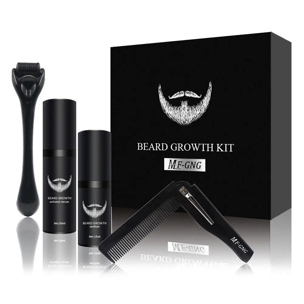 4 шт./компл. Для мужчин борода Набор для выращивания Усилитель роста волос толще масло Питательный несмываемый борода растут в комплекте борода рост ролик