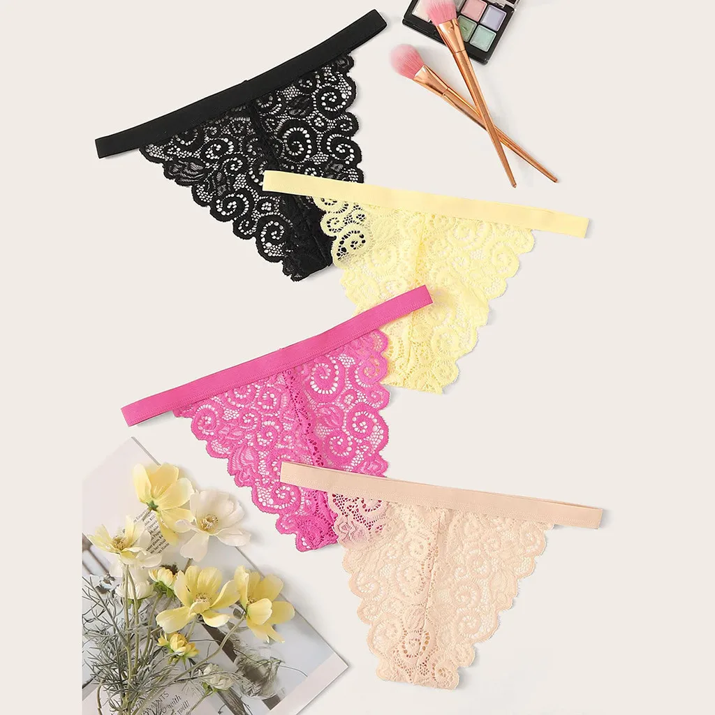 4 шт., женское кружевное нижнее белье с цветами, трусики, стринги, нижнее белье, стринги