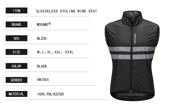 Описание: Этот универсальный, легкий ветрозащитный жилет идеально дополняет любой наряд. Непродуваемая одежда без рукавов предназначена для тех дней, когда вам нужна любая вентиляция. Особенности: ● Легкая Техническая ткань ветрозащитная и водоотталкивающая С сеткой сзади ● Ветрозащитный воротник-стойка ● Дизайн без рукавов поможет вам оставаться прохладным ● Молния полной длины ● Эластичная резинка на рукавах и низкий подол хорошо сидят ● 3 задних кармана для переноски предметов первой необходимости ● 2 светоотражающие линии вокруг вашего тела для обеспечения безопасности ночной езды ● Длинная задняя часть ● 1 карман на спине на молнии ● Светоотражающий логотип WOSAWE Упаковка: 1 шт. * велосипедная жилетка Примечание: Пожалуйста, выберите размер в соответствии с обхватом груди, спасибо.