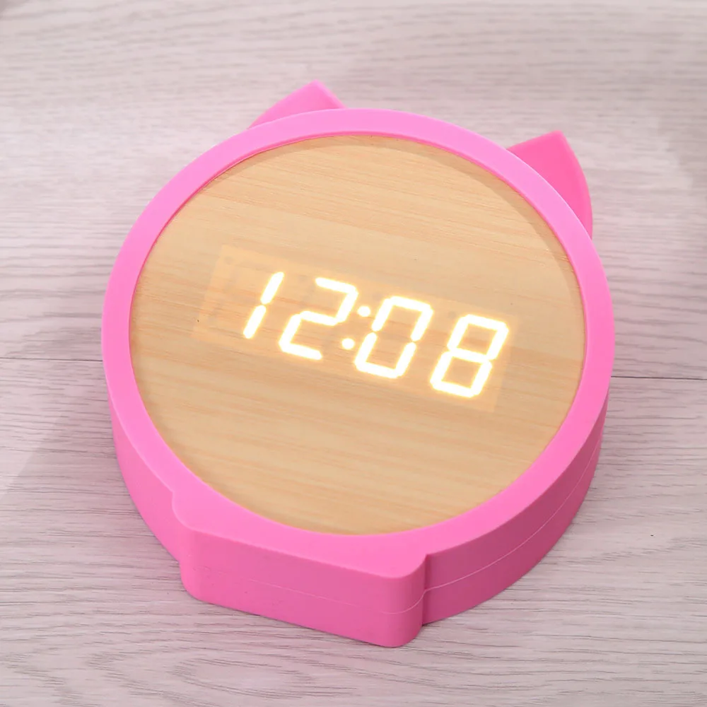 Кошка цифровые часы-будильник светодиодный Дисплей Будильник Настройки Деревянный Будильник Светодиодный Дисплей время сна с функцией Voice Управление для Спальня