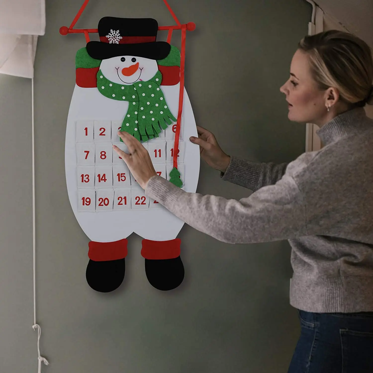 Гибкий: с красной лентой и деревянной палкой сверху, гибкий календарь можно легко повесить и снять. Идеальное праздничное украшение для дома, офиса, классной комнаты, камина, торгового центра, детской комнаты или в любом месте.