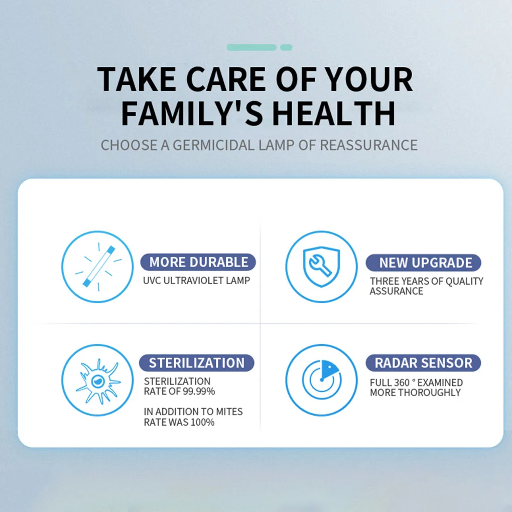Эта портативная комнатная УФ-лампа имеет эффект очистки 360 градусов, большую мощность и высокую эффективность.