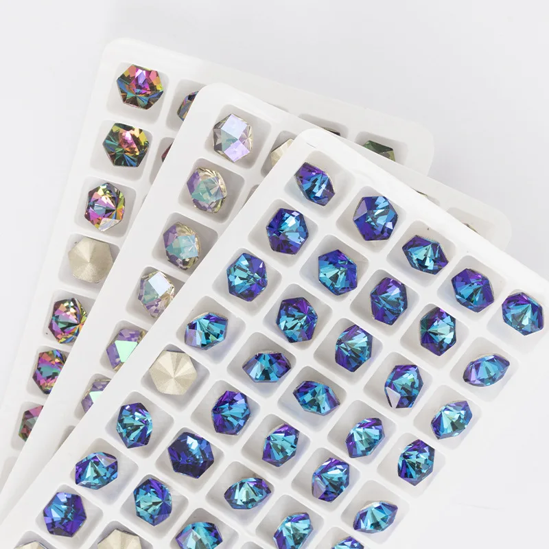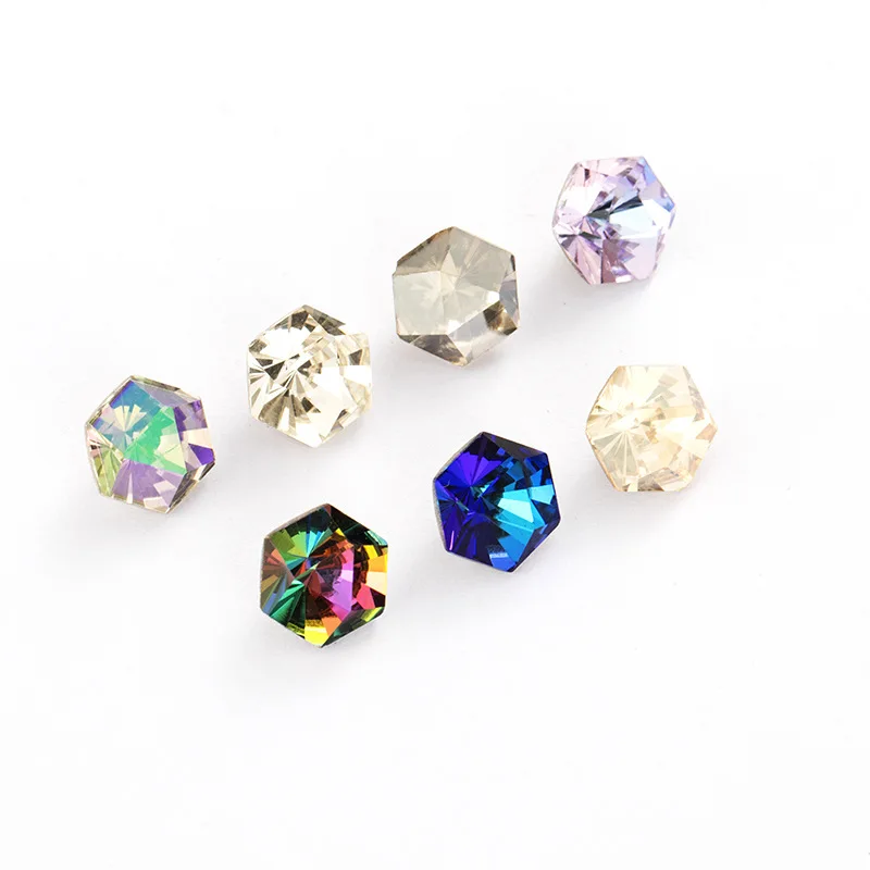 Шестигранные блестящие стразы для дизайна ногтей, хрустальные стразы, стеклянные элементы для ногтей, сделай сам, украшения для ногтей, камни Размер: 10x10 мм 6x6 мм Цвет: Золотая тень вулкан кристалл AB Форма:Шестигранник Материал: Хрустальный кристалл K9 Тип: pointback DIY хрустальные камни аксессуары для драгоценных камней Техника: Держатель для приклеивания Вид продукции:Поделки для дизайна ногтейПодробное описание продукта Особенности