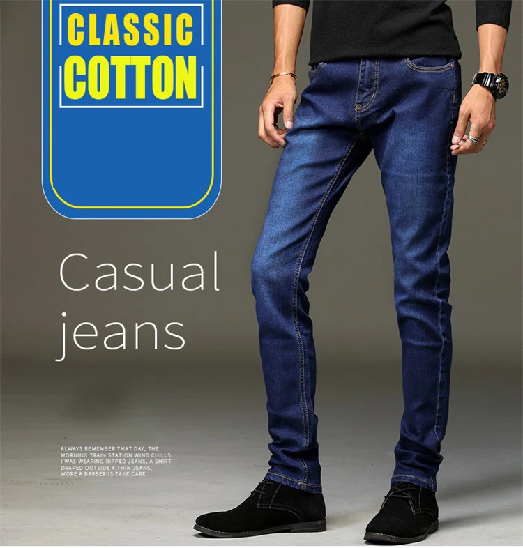 Тип товара: джинсы Сезон: весна, осень и лето Стиль: Модный, повседневный Длина брюк: длинные Материал: хлопок 76%, полиэстер 24% Рисунок: однотонный, черный, синий, серый Особенность: Толщина: обычная Мягкость: обычная Эластичность: микроэластичность Модель типа: приталенный крой Дизайн: классический, стиль колледжа Размер: размера плюс размер; 27,28,29,30,31,32,33,34,36 Упаковка включает: 1 мужские джинсы