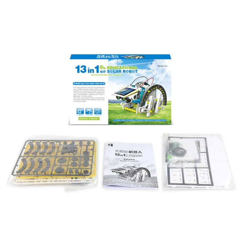 -Название продукта: робот на солнечных батареях DIY Собранный набор научные Развивающие игрушки для детей 13 форм трансформации робот мальчик подарок школьный стержень