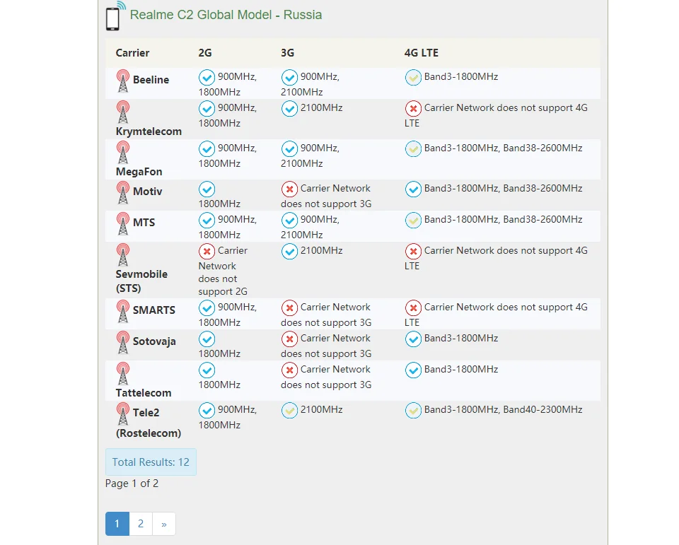 3. Если есть полоса, которая поддерживает телефон и ваш Перевозчик одновременно, это означает, что телефон может использоваться в вашей стране.