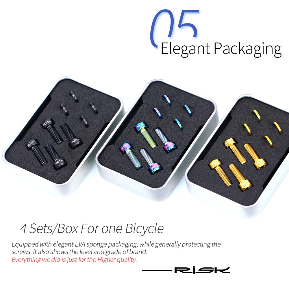 Каждый титана aloyscrew риска тщательно проверяется вручную и поставляется с риском подлинной лазерной гравировкой логотипа, гарантируя, что каждый, который достигает руки клиента, является совершенным.