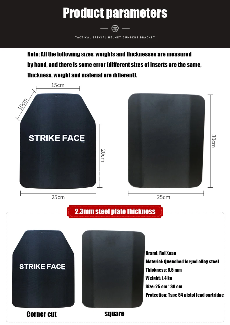 Эта стальная пластина выкована из hig 1000 ° высокая температура закалки, высокая твердость, хорошая анти-эластичность. Стальная пластина, фактическая толщина больше, чем оригинальная толщина. Легко носить с собой, можно поместить в тактический жилет и сумку