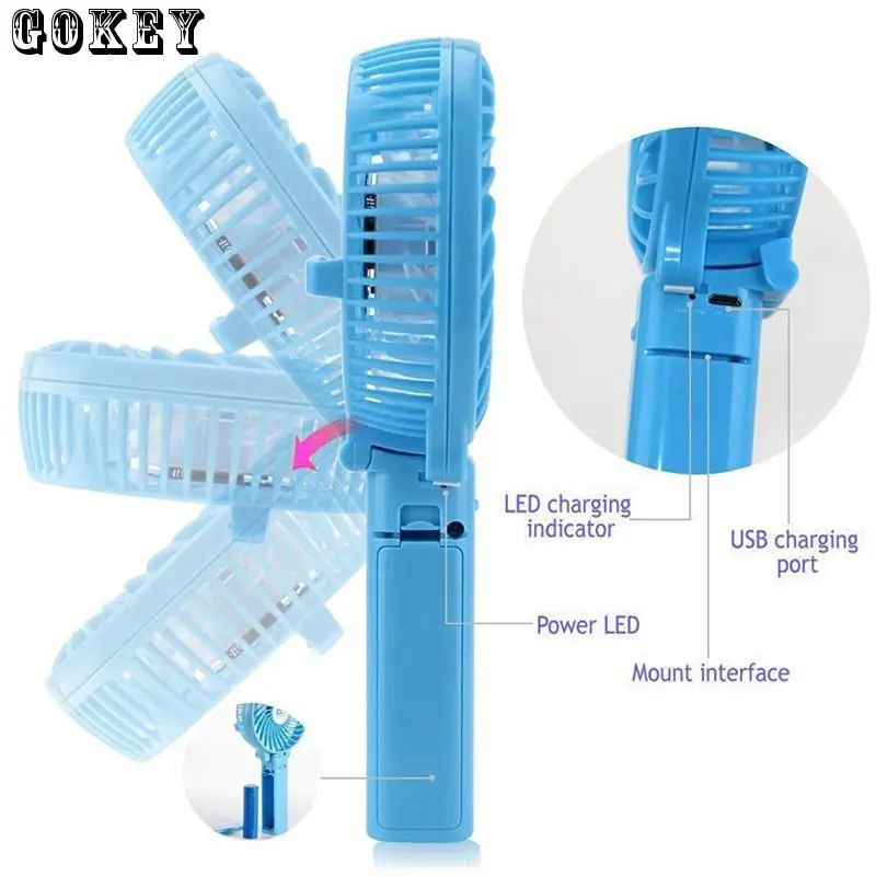 Портативный вентилятор с 3-уровневой ветровой и сложенной формой. USB заряжается.