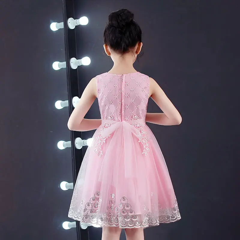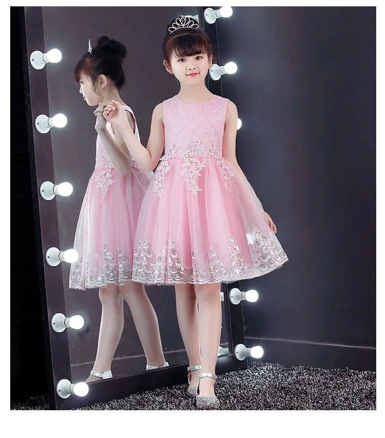 Розовое Кружевное платье принцессы с вышивкой для девочек; Детские вечерние платья для дня рождения; Бальное платье из тюля; Детская одежда для детей от 4 до 12 лет