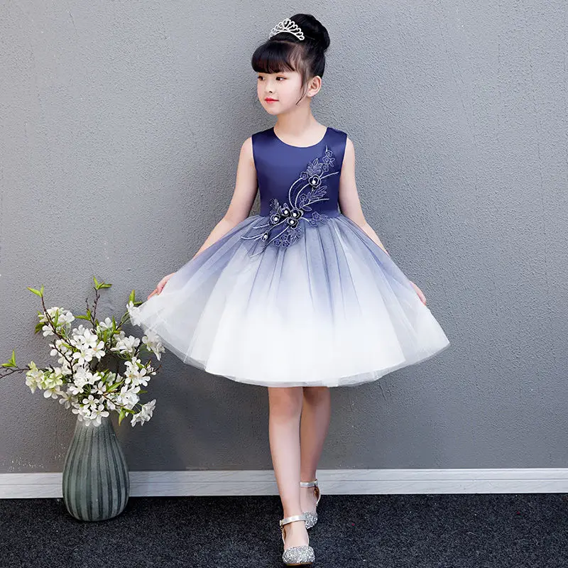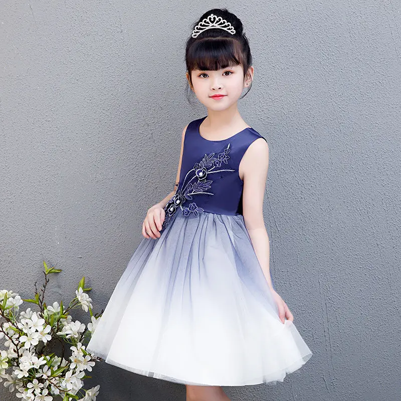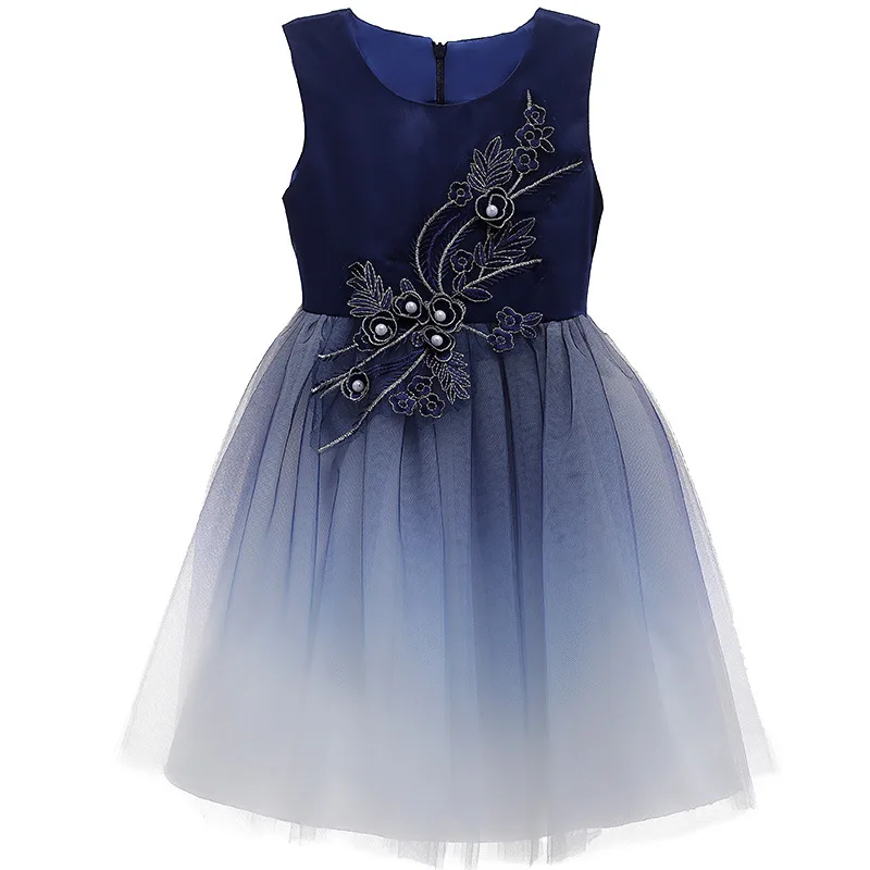 Платье для девочек с вышивкой; Темно-синие детские Платья с цветочным узором для девочек; Платье принцессы; Вечерние платья для девочек; Фатиновые Платья с цветочным рисунком