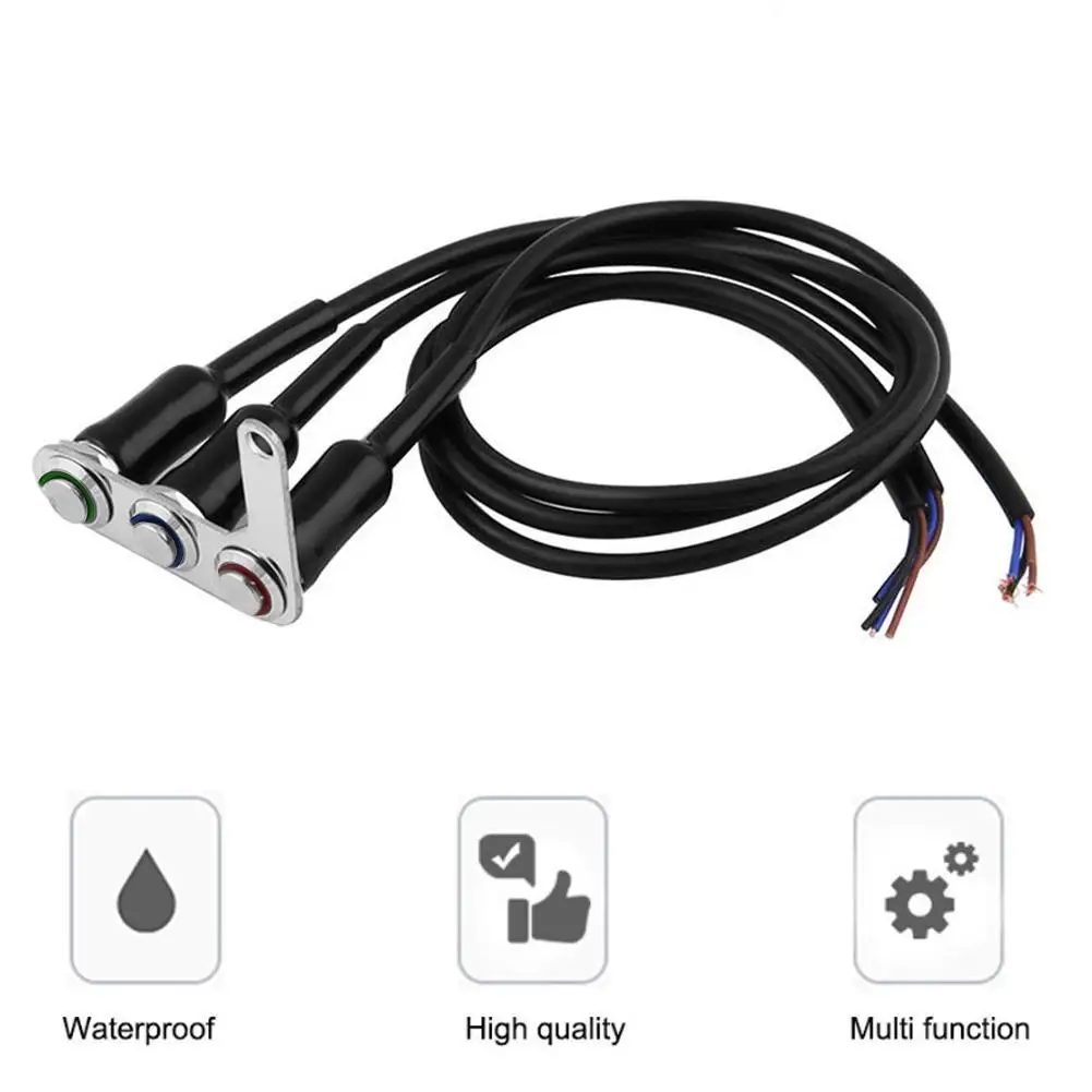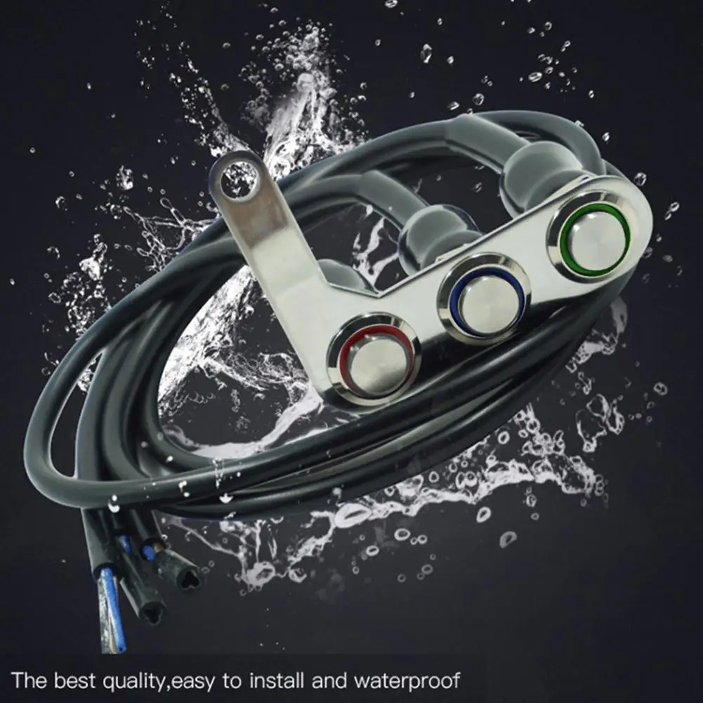 Характеристики tem Тип: мотоциклетные переключатели подходит для головной светильник, противотуманный светильник, устройство питания водонепроницаемый дизайн, подходит для дождливого дня нержавеющая сталь + медные провода Применение: подходит для мотоциклов, мотоциклов, квадроциклов, спортивных, грязевых, электрических велосипедов Длина кабеля: 60 см Светильник Цвет: красный/синий/зеленый Размер: как показано на рисунке особенность: водонепроницаемый, ручной возврат (блокировка) кнопка ВКЛ-ВЫКЛ, Можно использовать для общего светильник s, светильник опасности, противотуманный светильник, головной светильник и розетку питания для мобильных устройств, кнопка самовозврата (мгновенное действие), можно использовать в качестве рога, сигнала поворота, enginee power, запуск выключателей. Посылка с наклоном: 1 шт. 3 кнопки в 1 переключатель