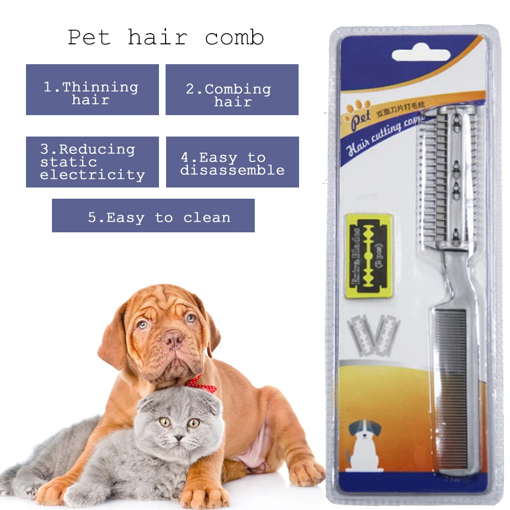 Описание: * 1. Материал: пластик + нержавеющая сталь * 2. Размер упаковки: 26,5x9,7 см Особенности: * 1. Многофункциональный дизайн, для обрезки волос и удаления запутывания. * 2. Расчески для бритвы используются для сокращения, изменения формы и тонкой обработки волос. Защитная бритва защищает кожу от царапин. * 3. Съемное лезвие для легкой очистки и замены. * 4. Удобная ручка для удобного захвата, * 5. Предусмотрены две сменные лезвия, удобные и прочные. Как использовать: * 1. Стопа: стопа Чувствительная и должна быть мягко почищена. Приподнимите конец стопы естественным образом в направлении соединения без сгибания. * 2. Хвост: успокойтесь при выпадении. * 3. Спина и живот: аккуратно расчесывайте в направлении волосков. * 4. Шея и голова: задняя часть ушей и области вокруг шеи легко завиваются и должны быть аккуратно почищены. Посылка включает в себя: 1 x гребень 2 лезвия