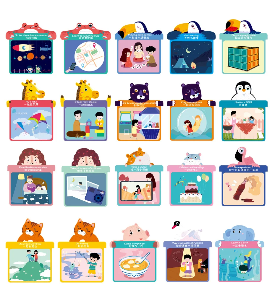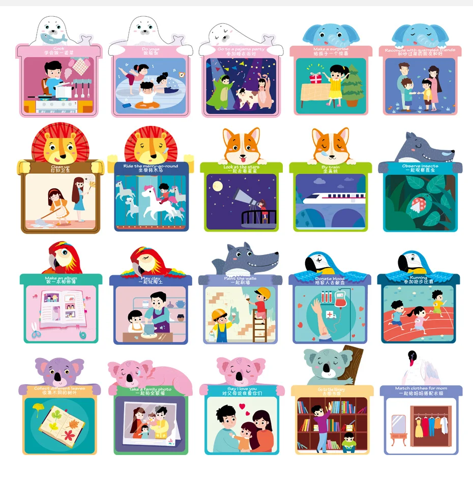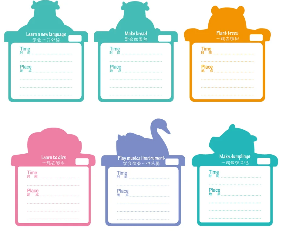 1. Откройте свернутый календарь 2. Повесьте его на стену 3. Определить то, что нужно сделать, Выньте соответствующий милые карта для домашних животных после завершения установки 4. Запись времени и места завершенного события на обратной стороне карта для домашних животных и отметьте коробку 5. Наконец, положите Завершенные и записанные милые карты питомца в карман календаря