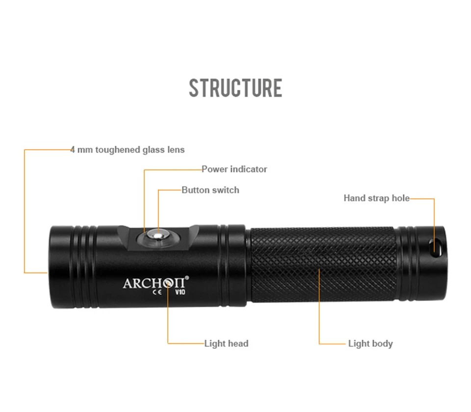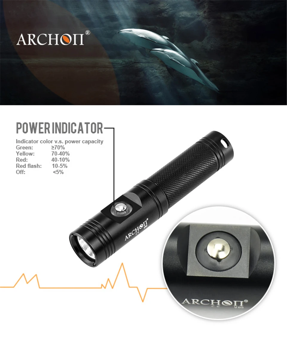 Archon V10S Cree светодиодный 18650 фонарь для дайвинга Профессиональный литий-ионный аккумулятор подводный поисковый фонарик с зарядным устройством для переноски