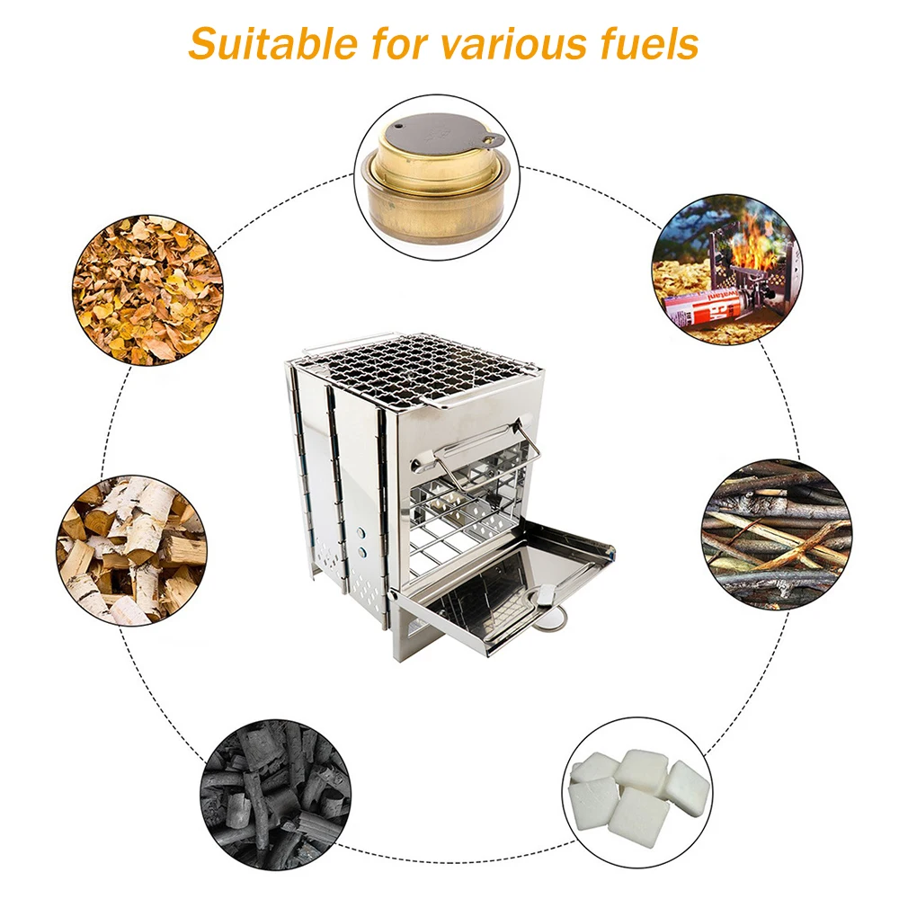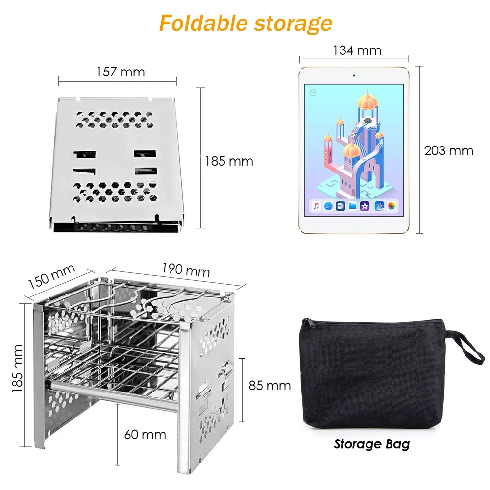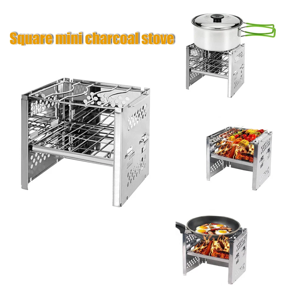 1. Складная напольная Кемпинг плита: Этот кемпинг гриль можно сложить как книгу. Простая система установки и мощное качество делают его подходящим для походов на барбекю и походов.