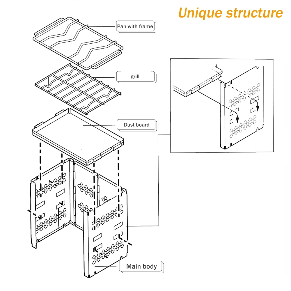 3. Сетчатый Дизайн: Этот Открытый Кемпинг барбекю имеет сетчатый дизайн, который позволяет углероду полностью гореть.