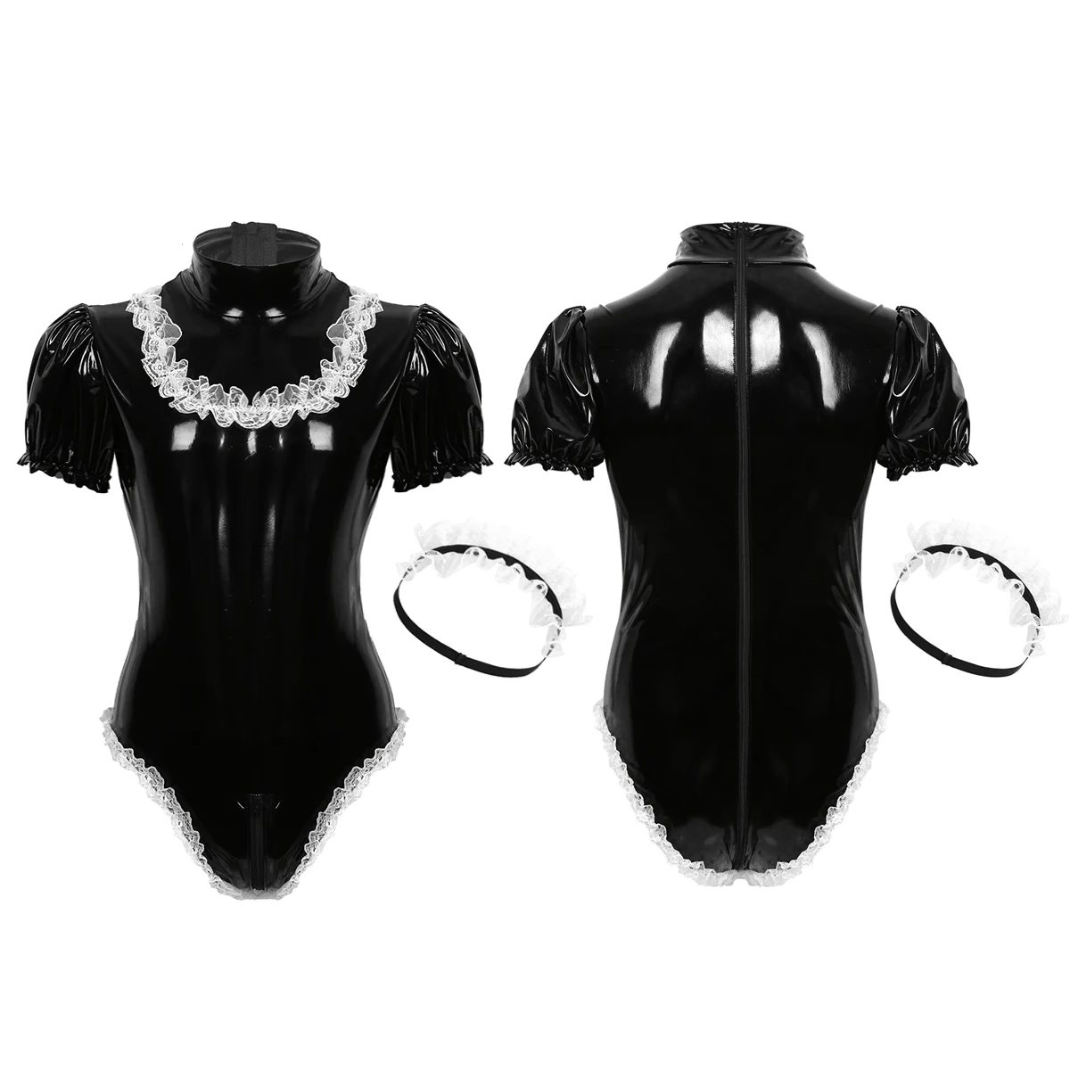 Men adults wet look sissy maid cosplay costume Halloween roleplay set, make you alluring and seductive.