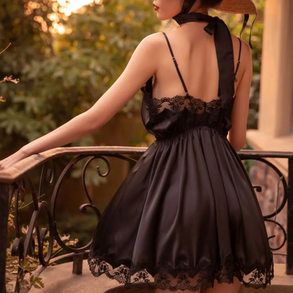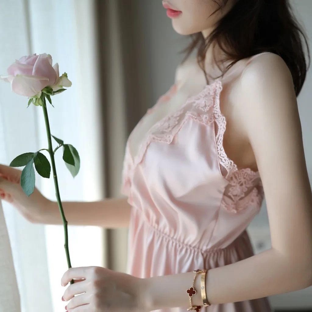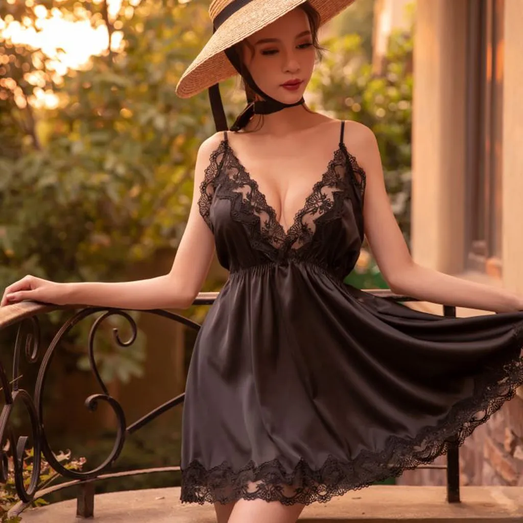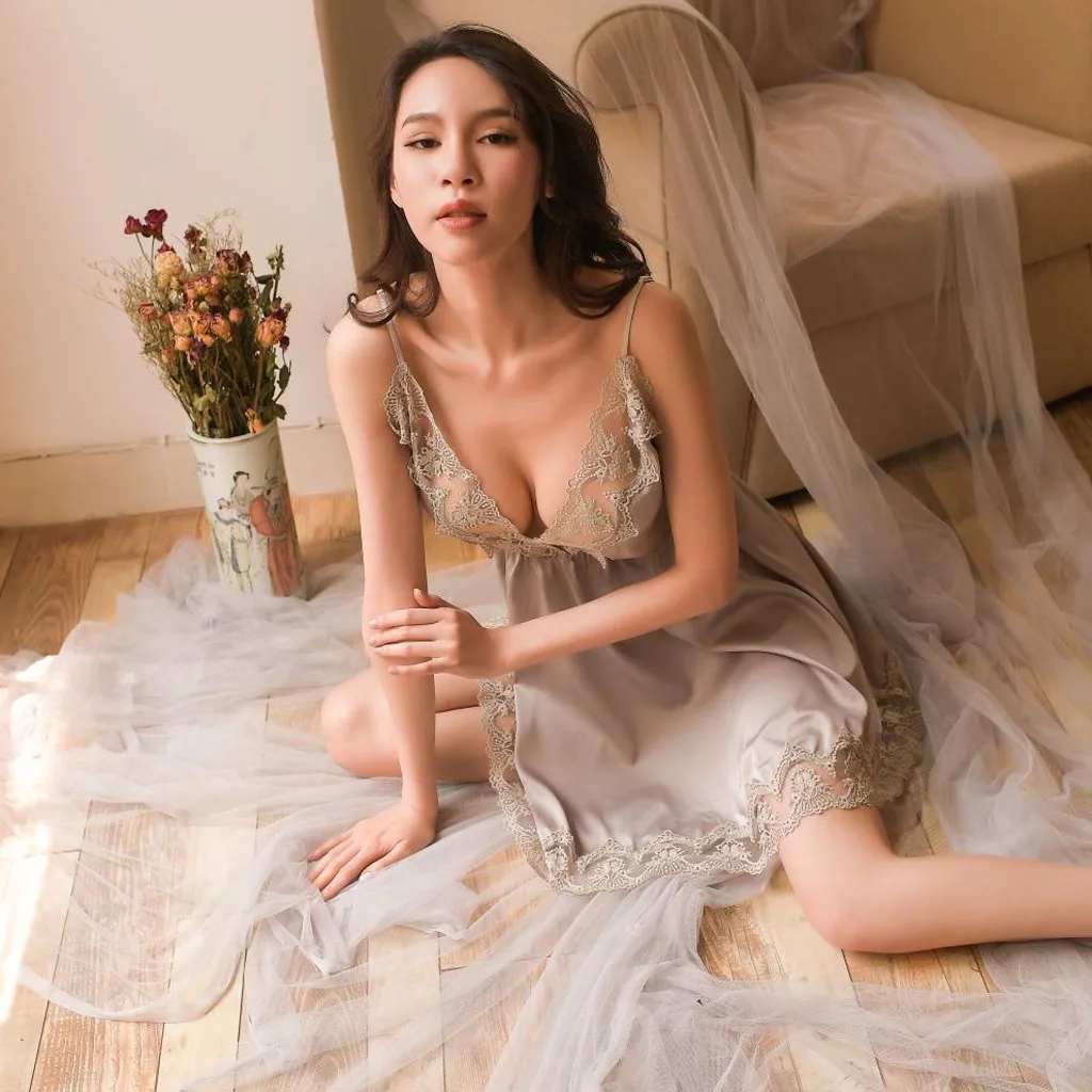 Атласная Шелковая пижама, кружевная ночная рубашка, женское нижнее белье, ночное белье, стринги