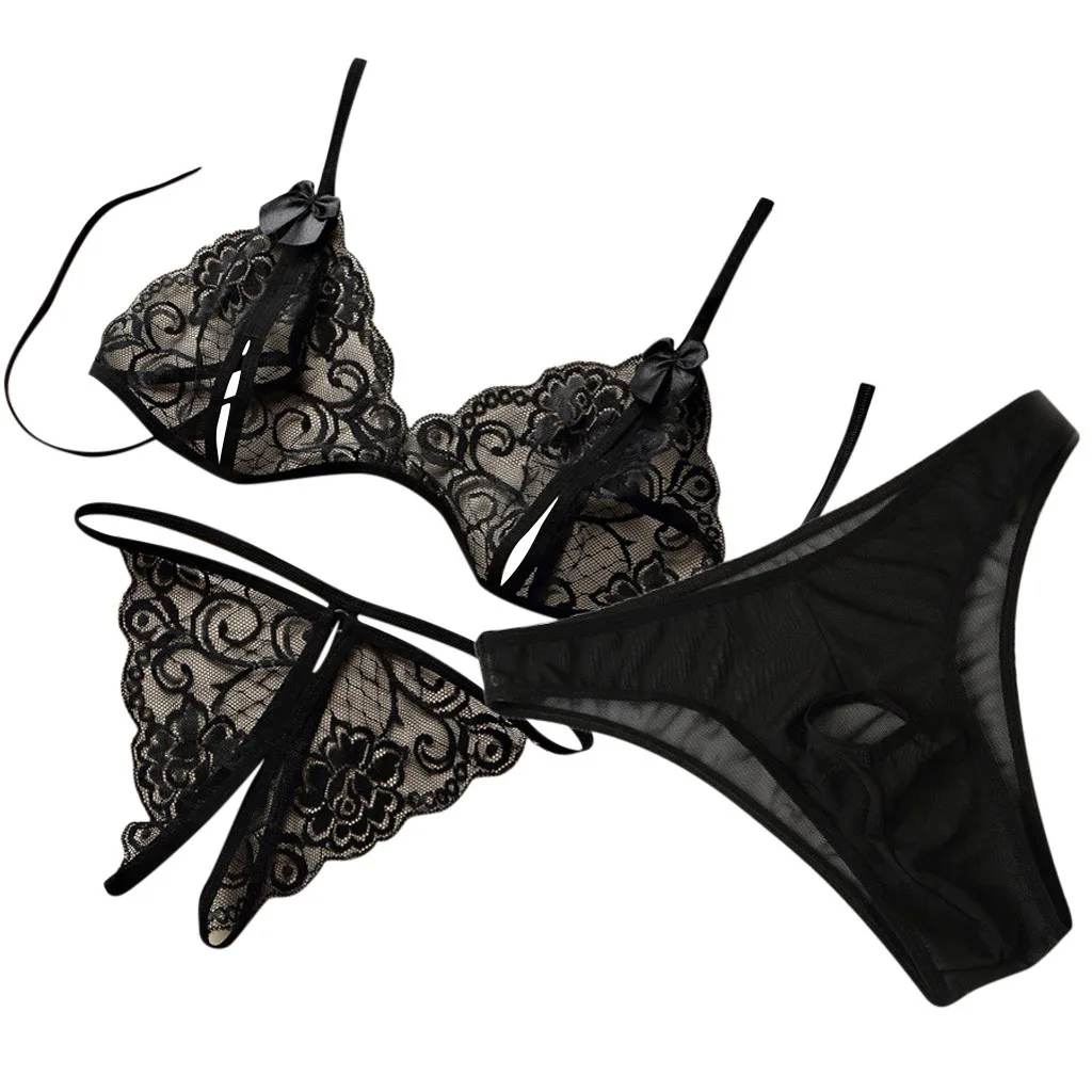 Мужское и женское нижнее белье на День святого Валентина для пары, кружевное нижнее белье из трех предметов
