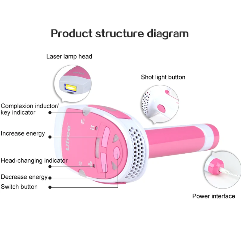 Ufree Hair Epilator Permanent Hair Removal Home Use Women Hair Removal Whole Body Bikini White & Pink