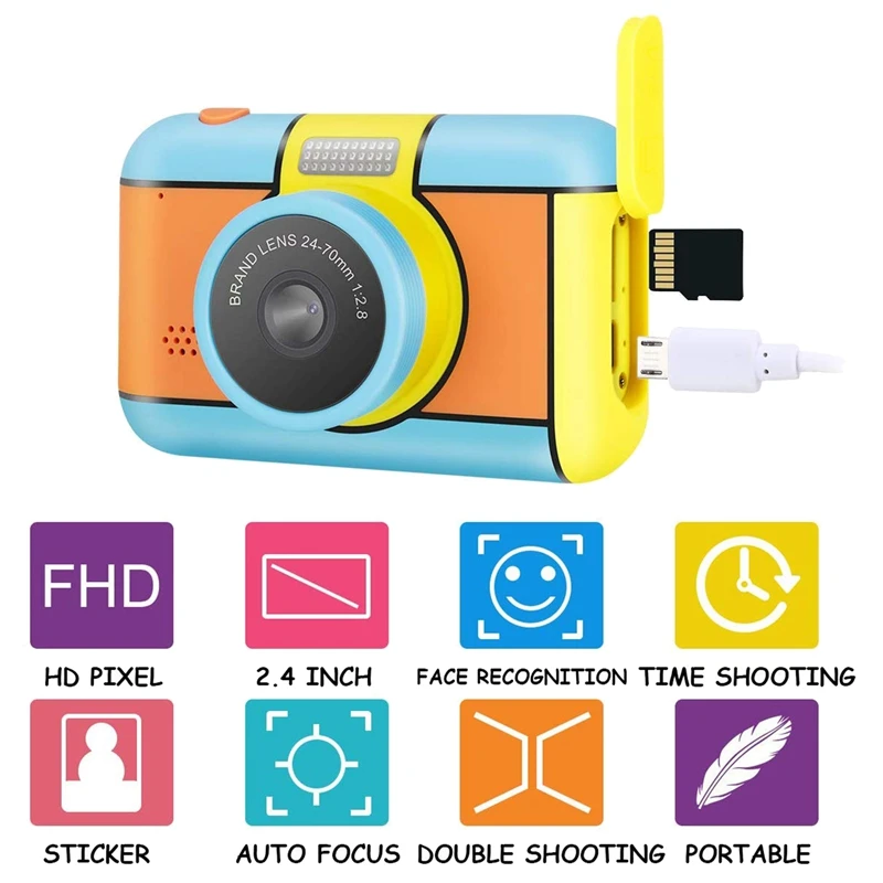[24 миллиона пикселей и 1080p HD видео] Эта детская камера имеет 2,4-дюймовый большой ЖК-синий экран, 24 миллиона пикселей HD объектив как спереди, так и сзади, 4x цифровой зум, 7 пикселей на выбор, видео 1920x1080P-это лучшая детская видеокамера и игрушечная камера для детских деликатных глаз, Держать детей помолвленными и принести счастливый опыт для мальчиков/девочек.