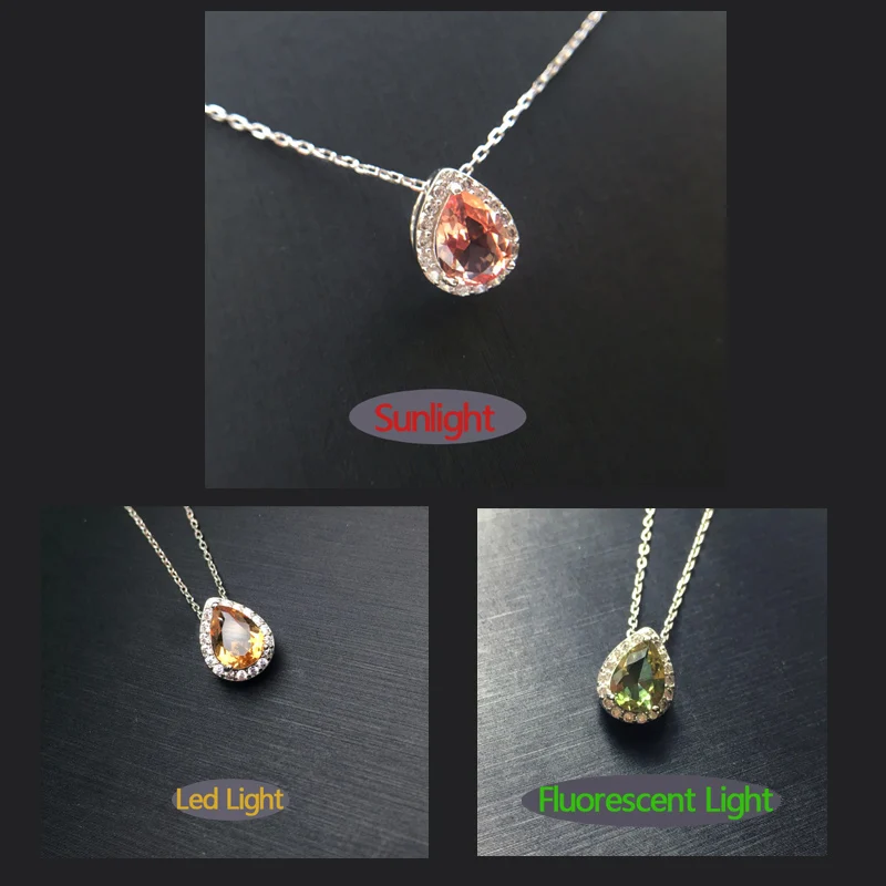 FFGems Zultanite Ювелирные наборы с драгоценным камнем из настоящего серебра 925 пробы Diaspore изменение цвета для женщин женские вечерние свадебные подарки с цепочкой Основной камень: создан зултанит Размер камня: Груша 6*8 мм Кольцо вес: 4,6 г Крепящаяся цепь