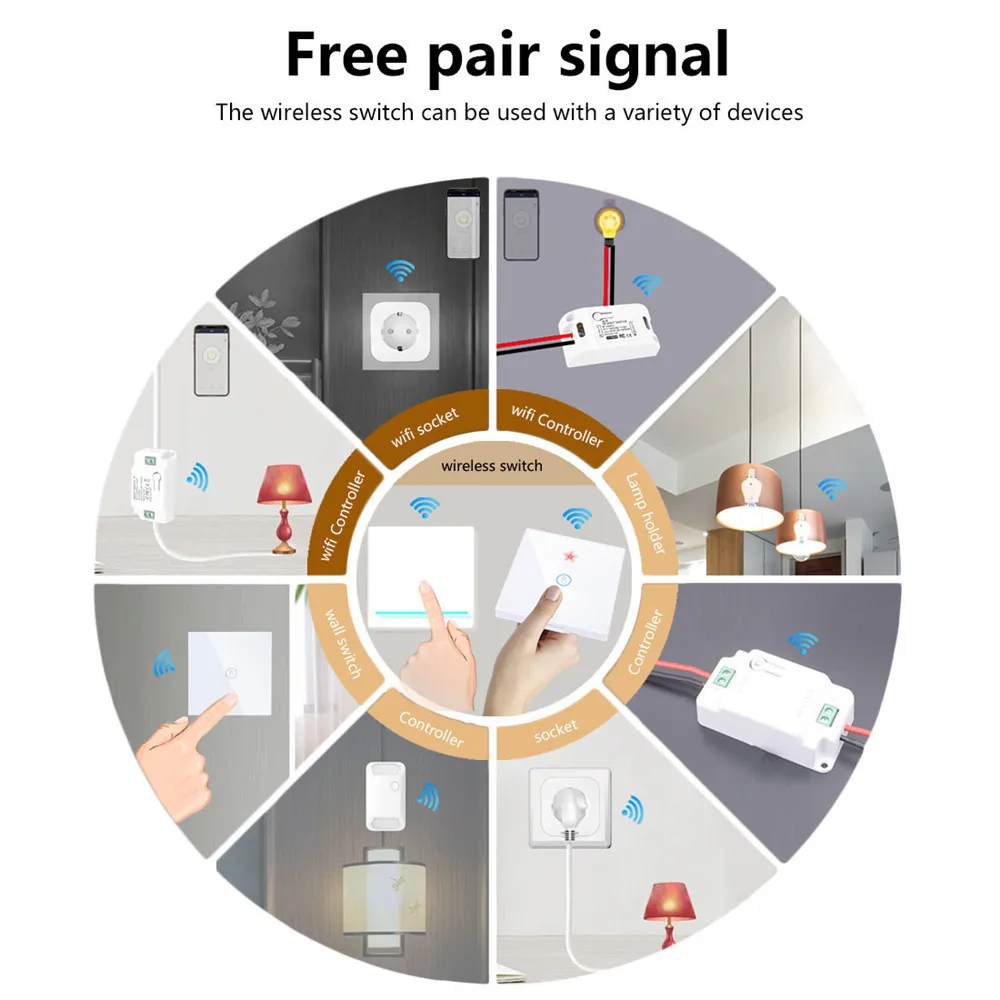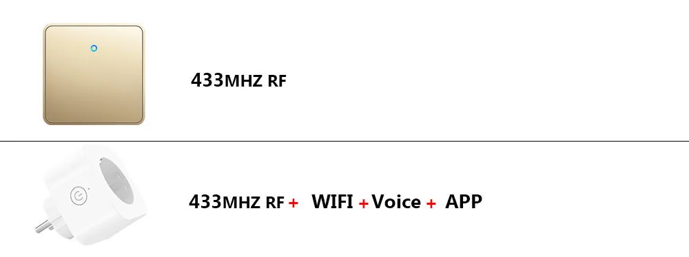 Беспроводной переключатель не имеет функции Wi-Fi, только функция RF 433 МГц Розетка имеет WIFI + RF 433 МГц + Приложение + голосовую функцию