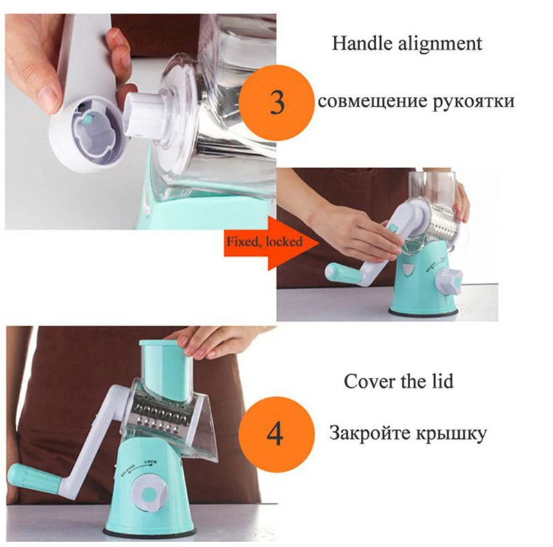 Ручная овощерезка Многофункциональный кухонный инструмент из нержавеющей стали роторная овощерезка с коромыслом 3 в 1 шлифовальный станок