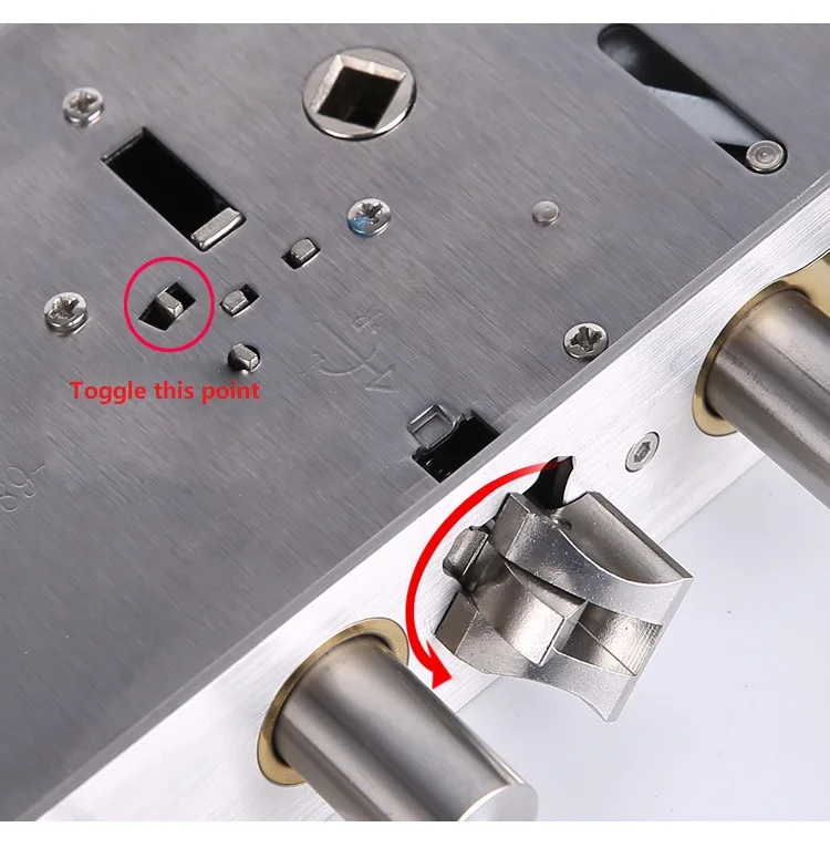 Если для трех переключателей ручки (включая замок отпечатков пальцев), пожалуйста, используйте два квадрата и пружины вместе, как указано выше инструкции по фотографии.