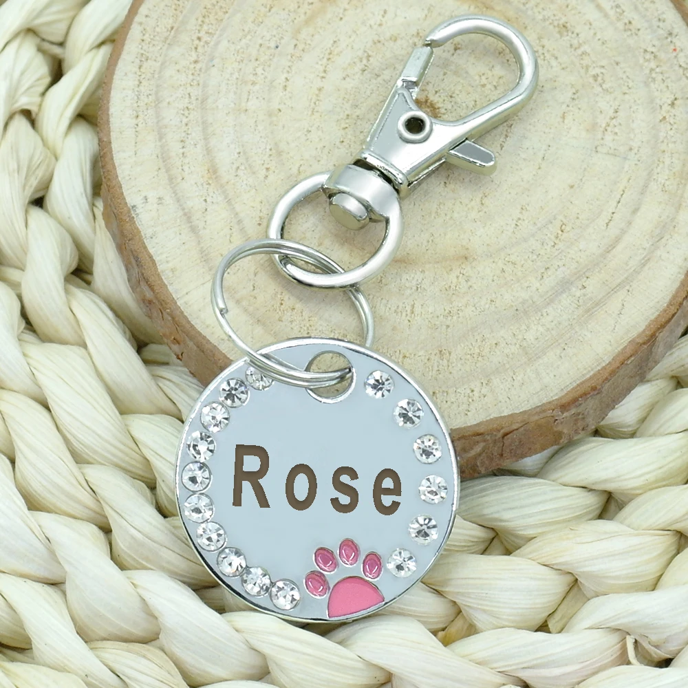 Ярлык для собак, персональный ярлык для щенков, кошек, идентификационный ярлык, выгравированный на заказ ошейник для собак, аксессуары, именной ярлык из нержавеющей стали, лапа для собак, кошек, розовый цвет