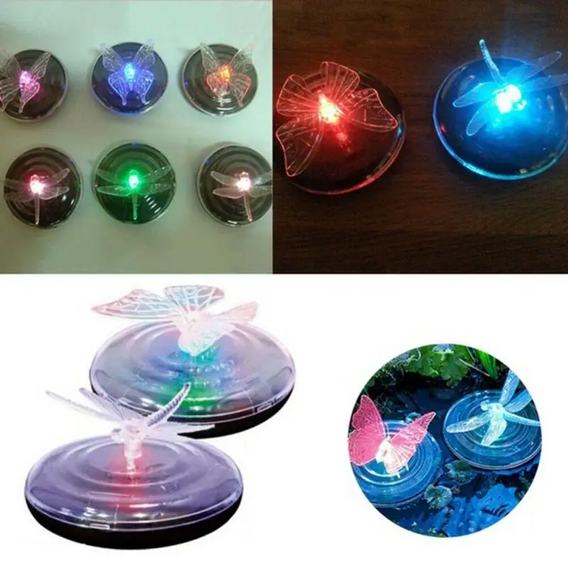 -Светильник на солнечной батарее, светодиодный светильник 7 цветов, плавающий светильник с водой, стрекоза или украшение в виде бабочки