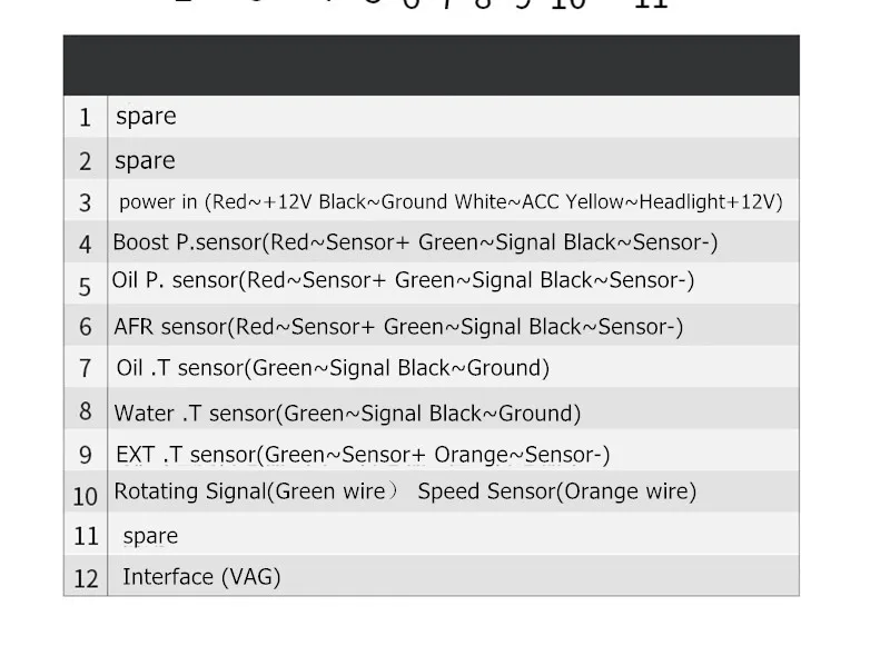Мощность (Красный ~ + 12V черно до земли белый ~ ACC Желтый ~ фар + 12V)