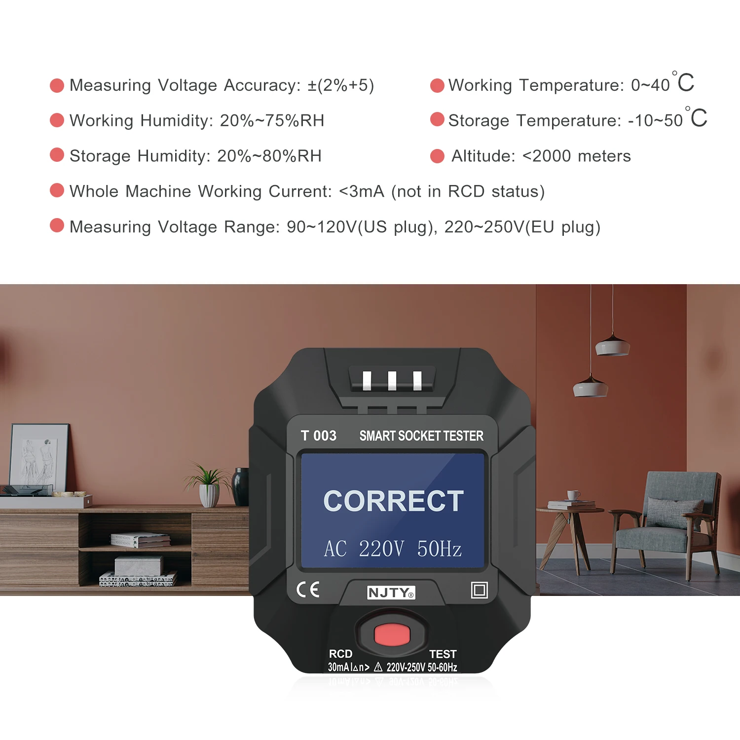 Применение: Полезный инструмент для тестирования электрических розеток дома, офиса, школы, фабрики и т. д.