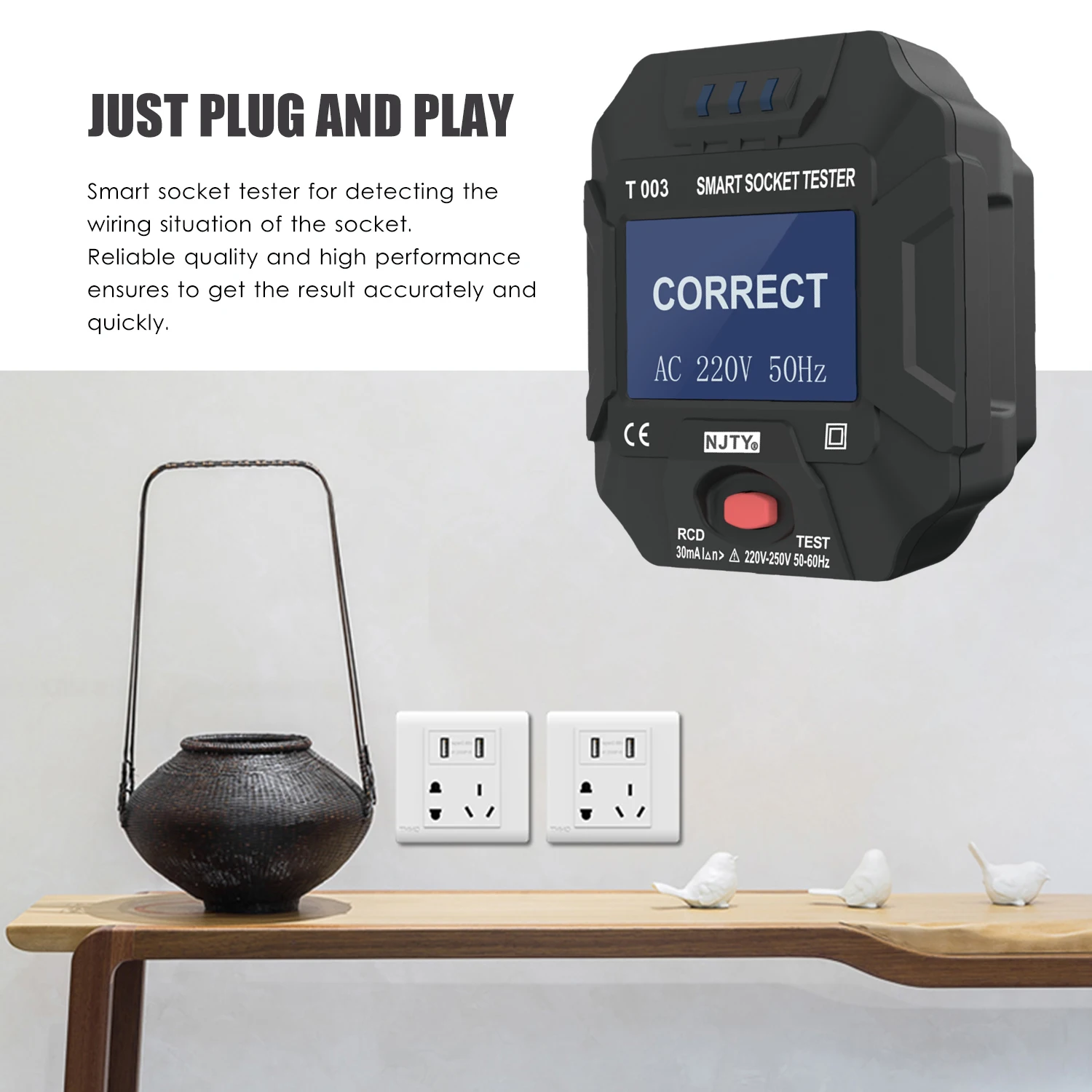 Умный тестер гнезда в основном используется для полярного обнаружения электросети и обнаружения утечки. Напряжение и частота розетки могут быть обнаружены и проверены, правильно ли проводка или нет, результаты тестирования будут четко отображаться на ЖК-экране.