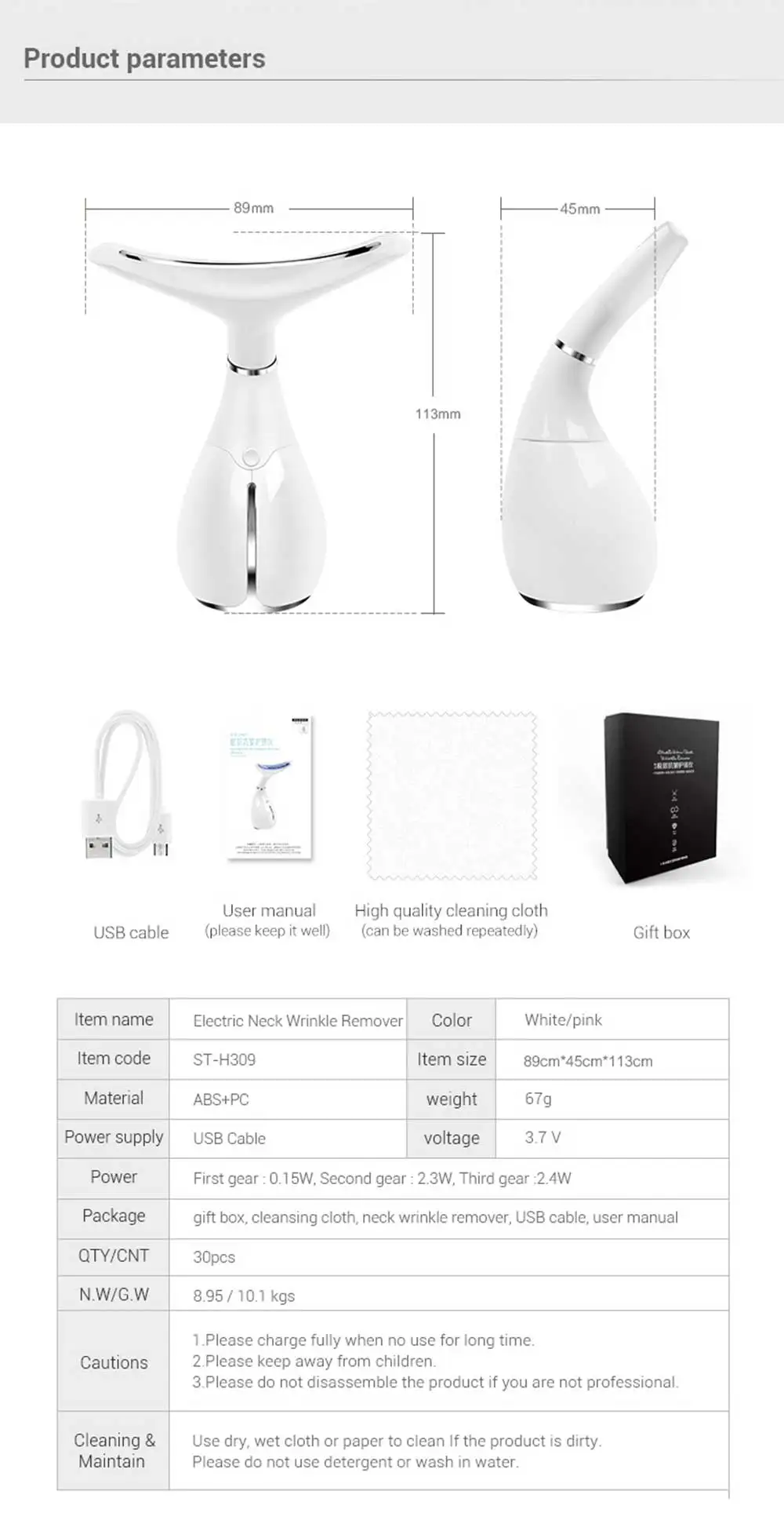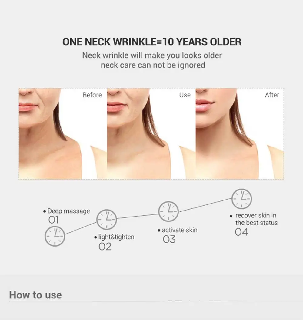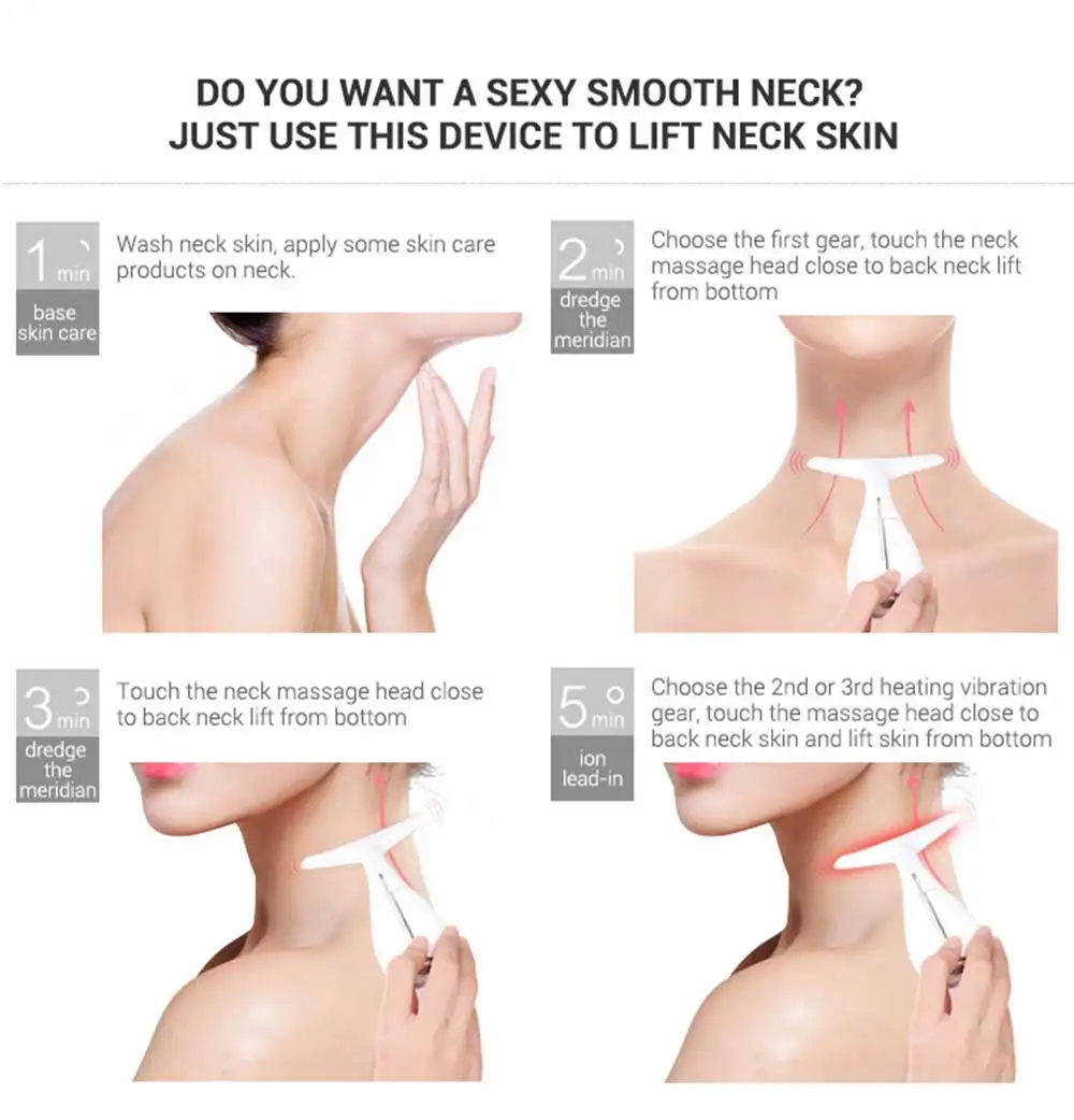 2 в 1 массажер для лица и шеи Особенности устройства против морщин лица для массажера циркуляции крови: Высокочастотные вибрации каждые 6200 минут могут быстро активировать клетки, повысить эластичность кожи шеи, снять морщины шеи, восстановить упругость кожи и повысить лимфодренаж. Три-переключатель скорости в использовании, во-первых, при комнатной температуре, секунд нагрева под углом 45 ℃ ± 5, третий нагревающий с повышенной вибрации интенсивности, 3-скоростной использование случайного переключения. 45 ° C ± 5 ° C, что помогает коже открыть поры, это может помочь двойному впитыванию эссенции; эссенция может проникать непосредственно в кожу и облегчать поглощение средств по уходу за кожей. Напоминание время каждой минуты, более удобный для пользователя. Линии лица и шеи подстраиваются под форму дуги, массируют прозрачным образом. Зарядка через usb-кабель, легкая и портативная.