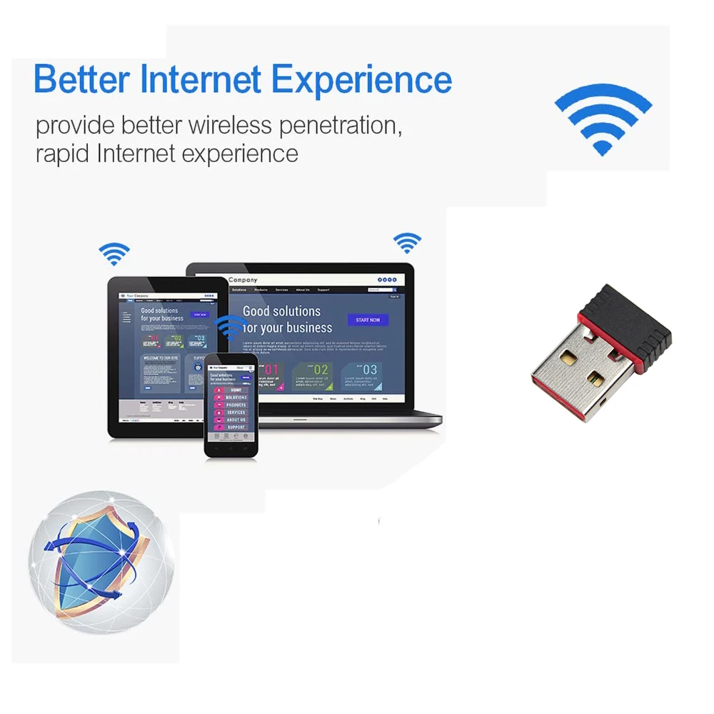 Это беспроводная сетевая карта 150 Мбит/с использованием чипа RTL8188, поддерживающего операционные системы Windows, Mac OS, Linx и Android. Эта беспроводная сетевая карта поддерживает множество брендов телевизионных коробок, коробок STB, беспроводных камер и других устройств, которые должны использовать внешний WiFi по всему миру.