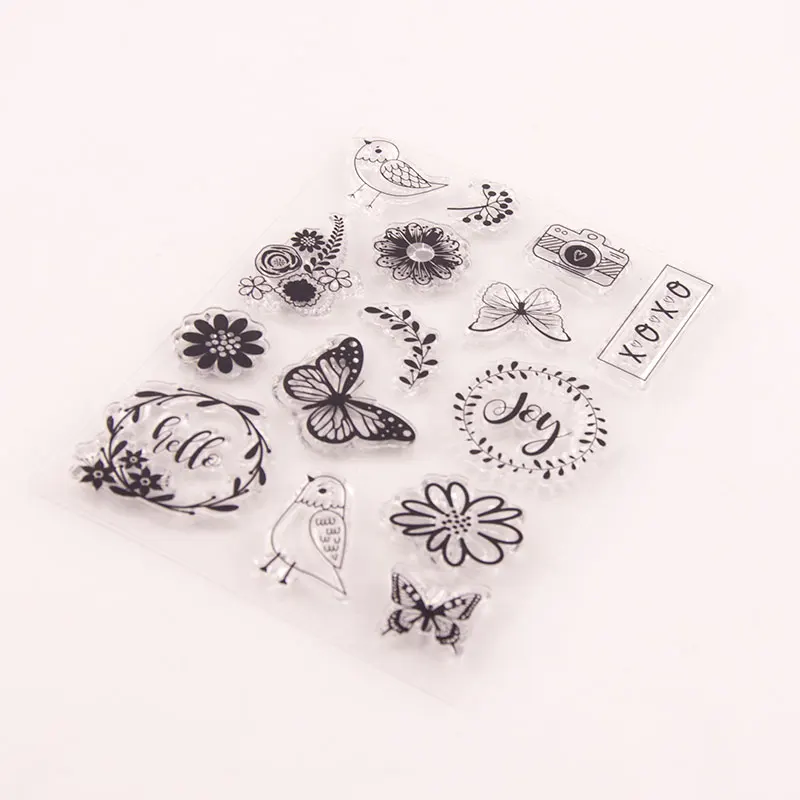 Бабочка птица чистая печать в виде цветка венок прозрачные марки ремесло печать штампов для DIY скрапбукинг украшения инструменты для карт