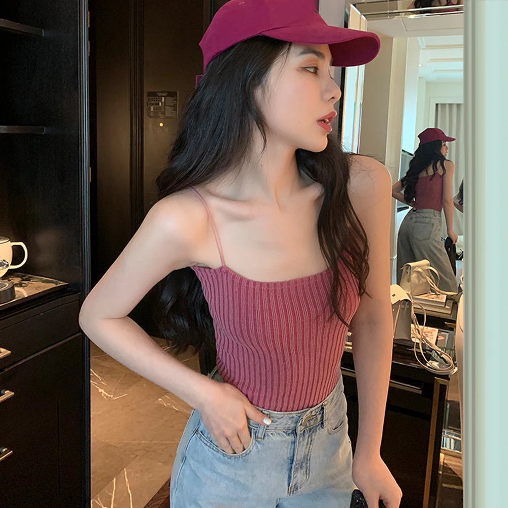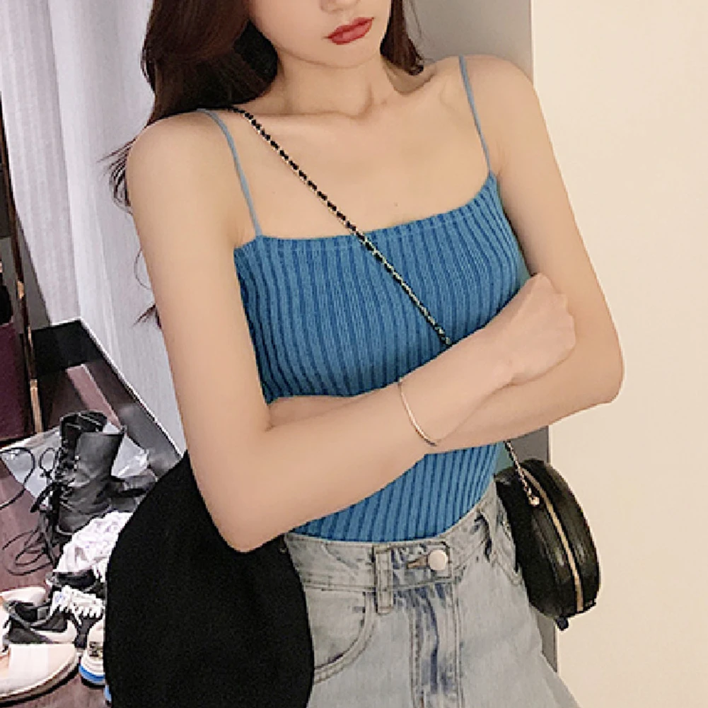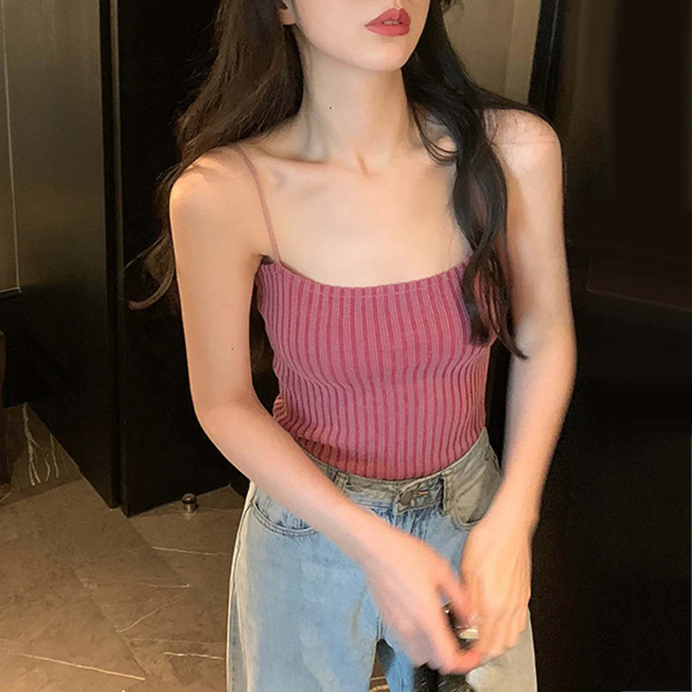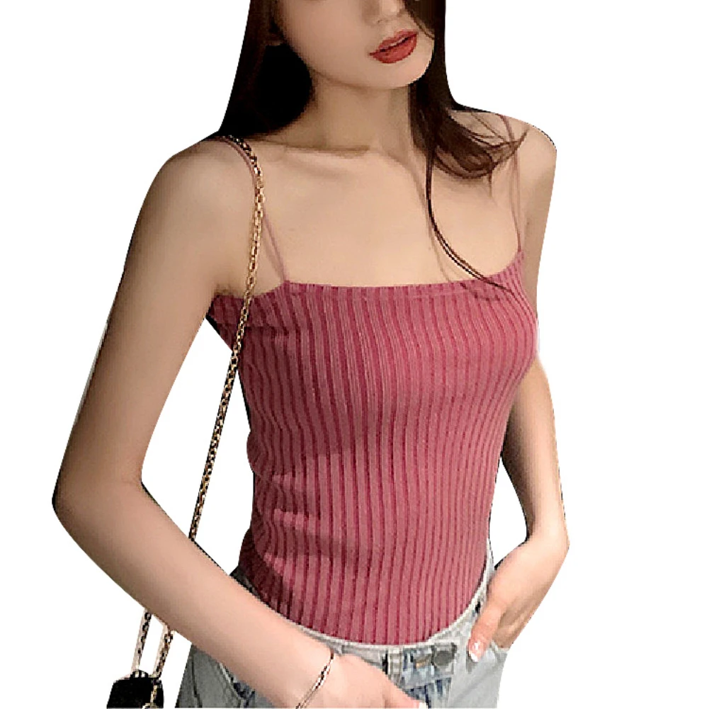 Женский однотонный ребристый жилет без рукавов, облегающий топ на бретельках