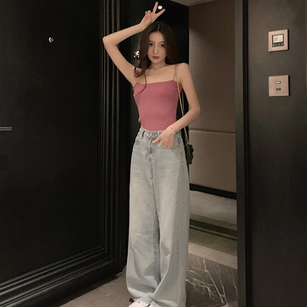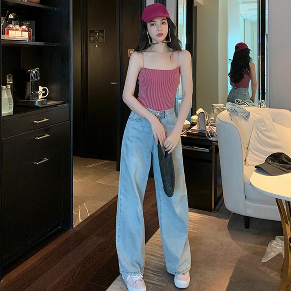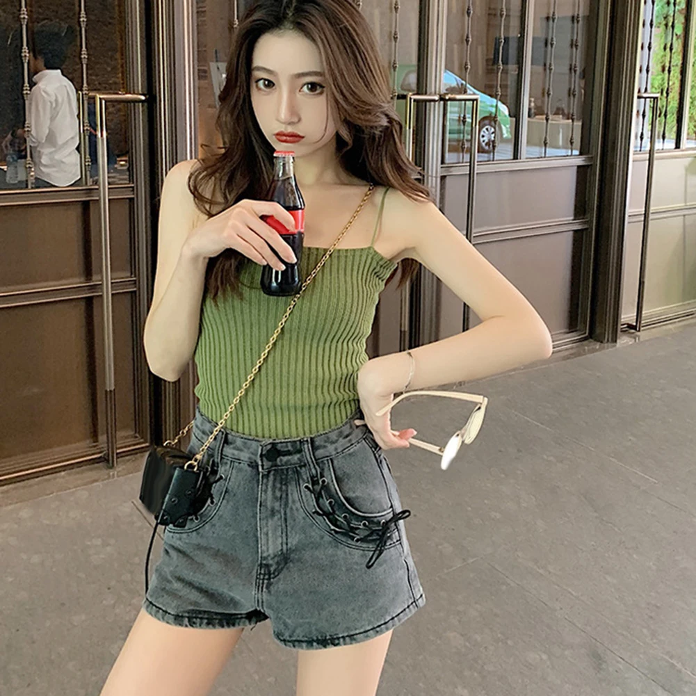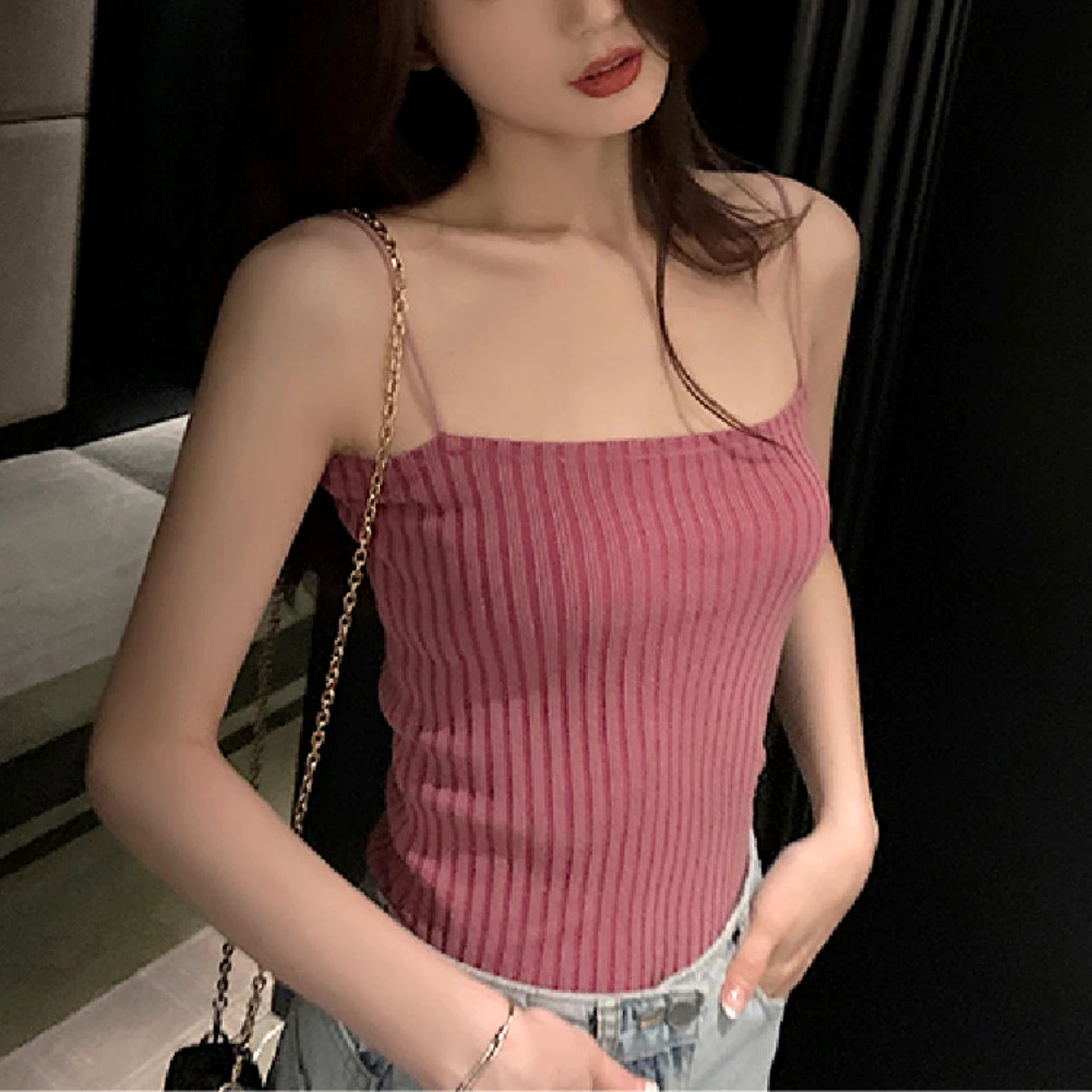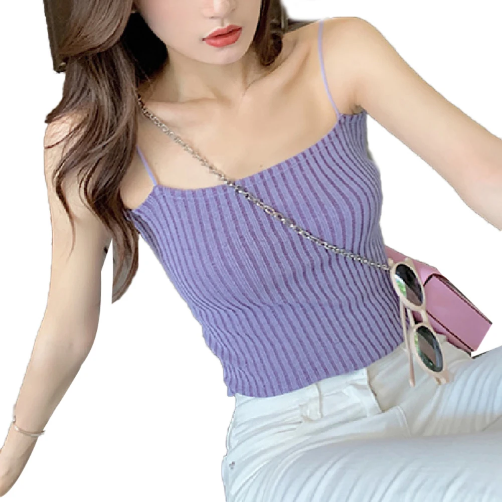Женский однотонный ребристый жилет без рукавов, облегающий топ на бретельках